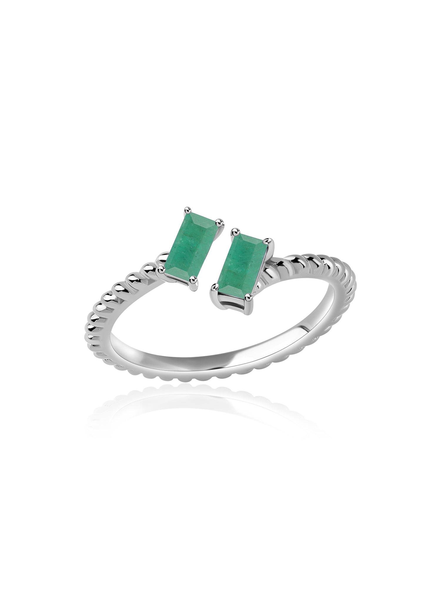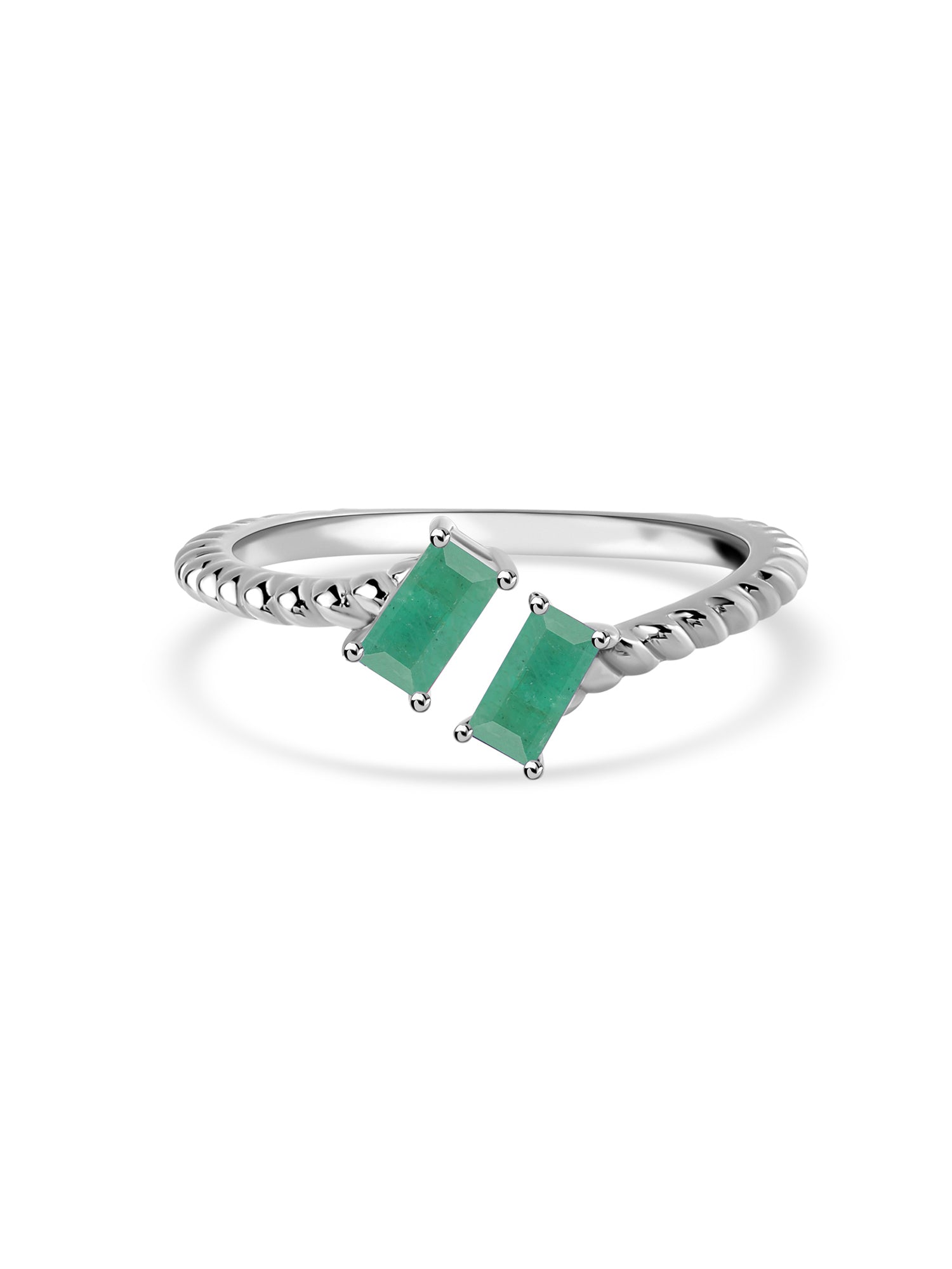 Add a clean edge to your jewellery game with this Baguette silver ring, set with twin sakota emerald baguettes. The modern silhouette and green tones create a fresh look that pairs beautifully with workwear or weekend casuals.