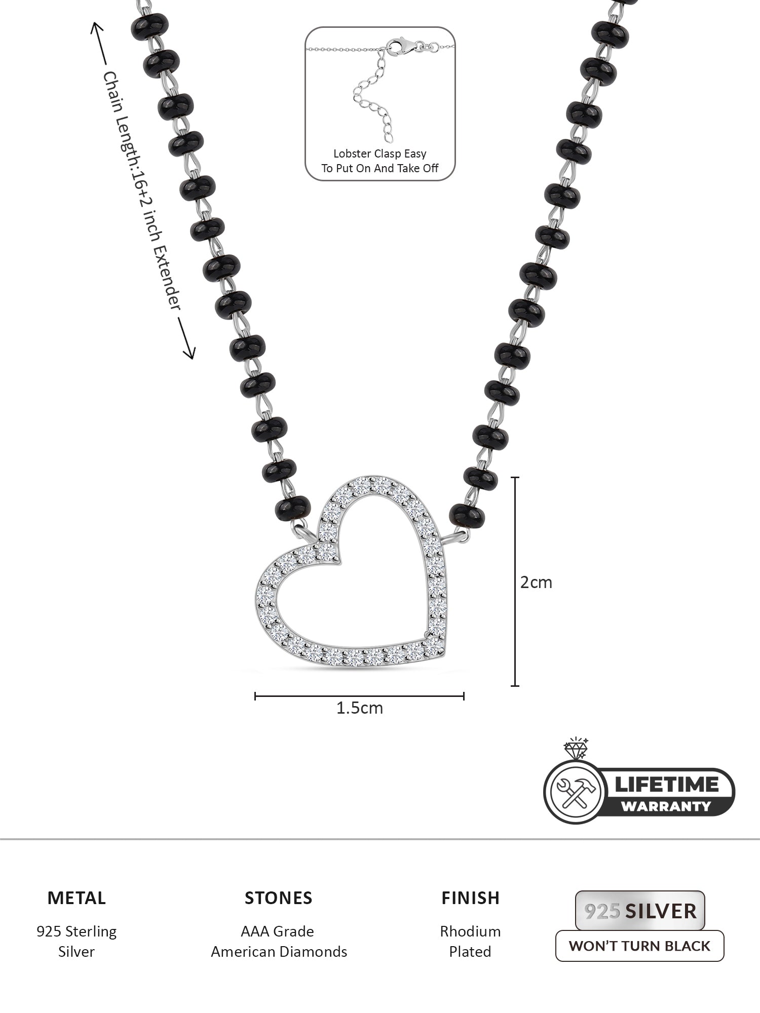 - The size of this Mangalsutra is 16 inches long and comes with a 2-inch extender