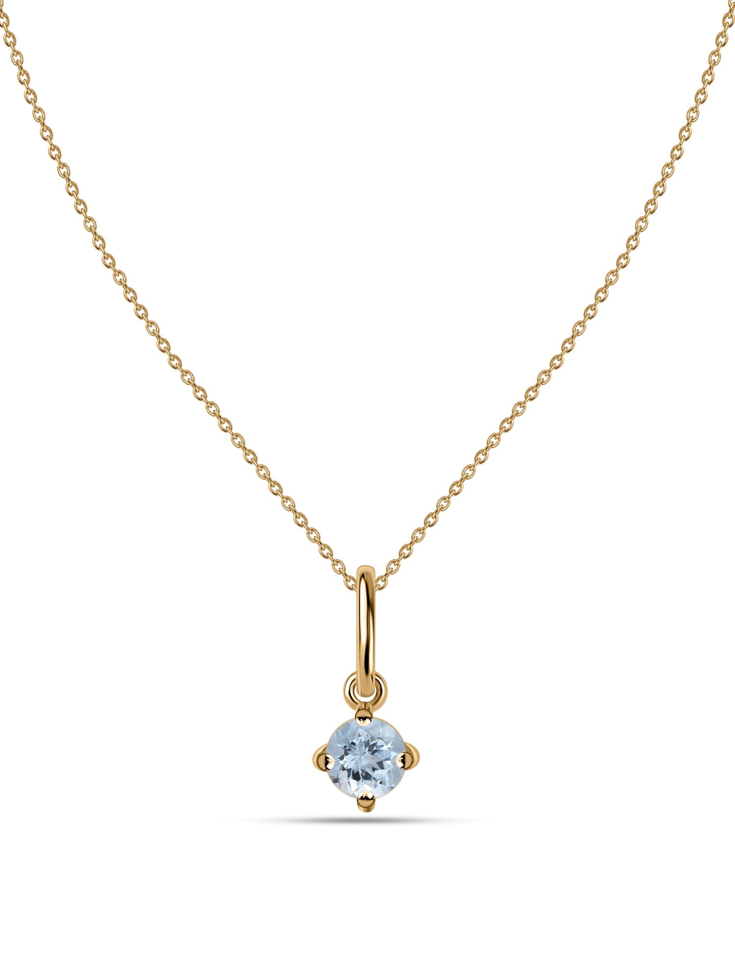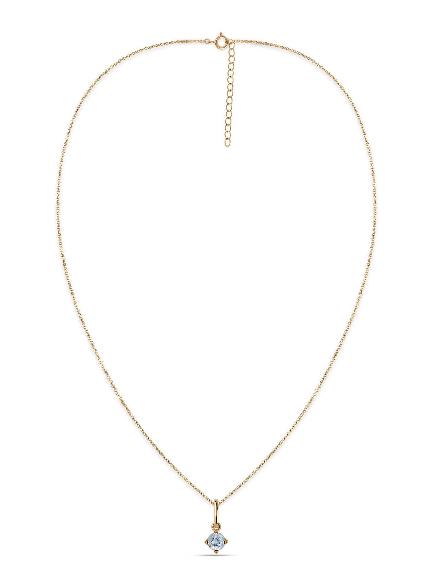 This soft yet striking gold pendant showcases the gentle charm of aquamarine. Feminine and graceful, it’s a subtle pop of color that transitions effortlessly from day to night.