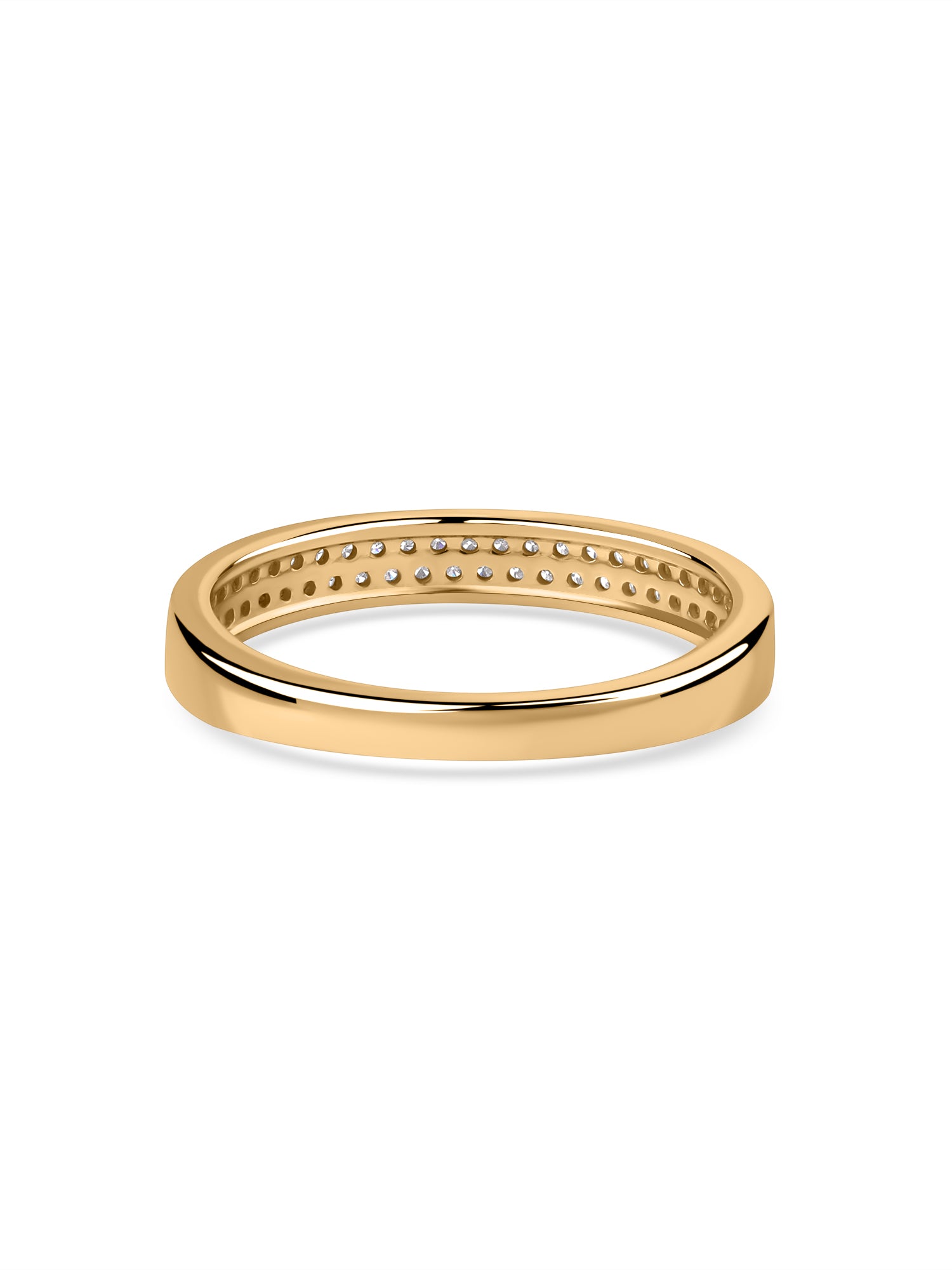 This Double Row Diamond Anniversary Ring features 55 round lab-grown diamonds (1.00 MM each) in a refined pavé setting, adding up to 0.27 carats. The double row design enhances sparkle, making it a stunning choice as a wedding band, anniversary ring, or even a stackable statement piece.