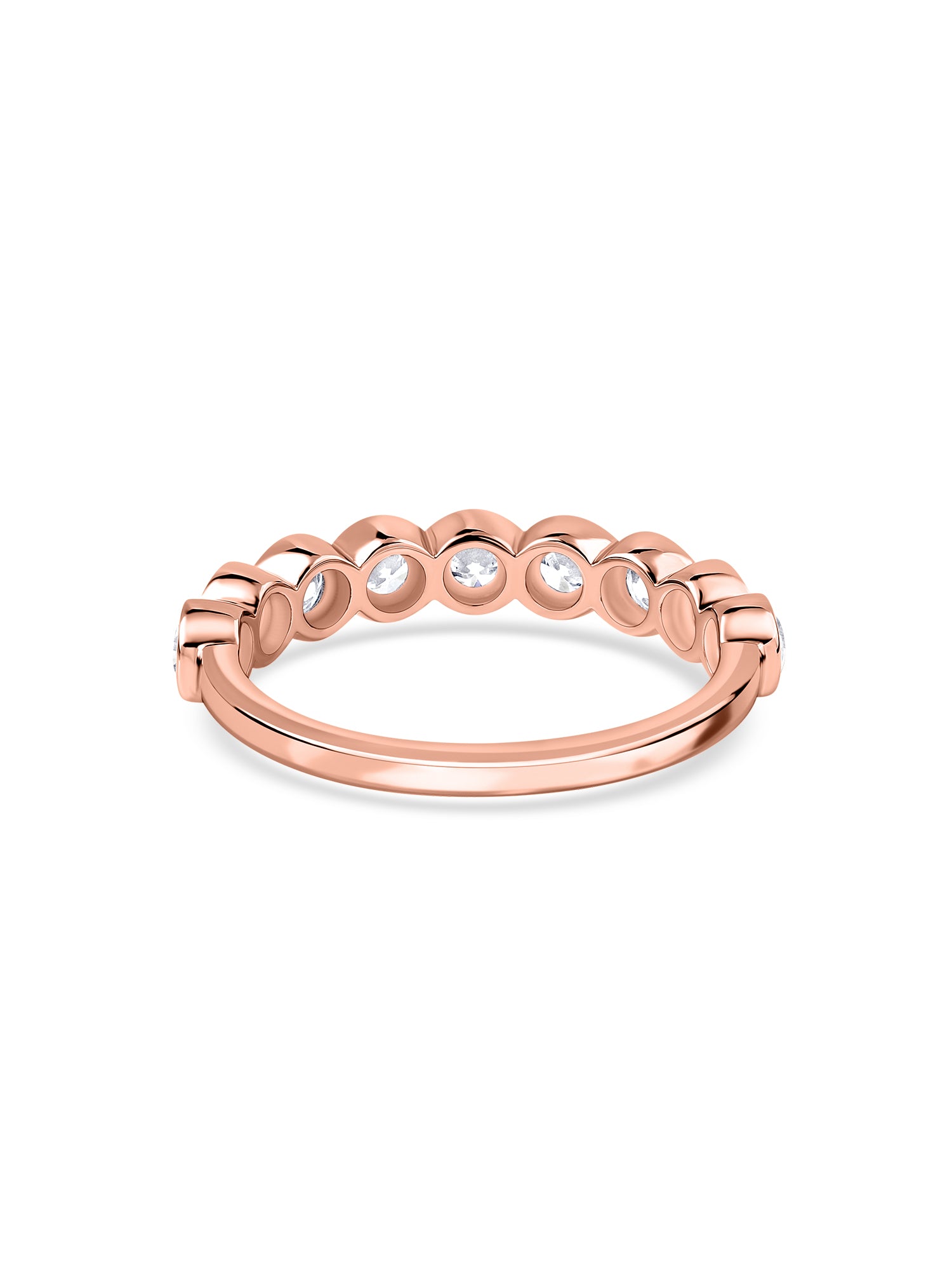 A charming gold band showcasing round lab-grown diamonds in a soft, scalloped design. Adds a playful sparkle that’s perfect for saying “yes” in style.