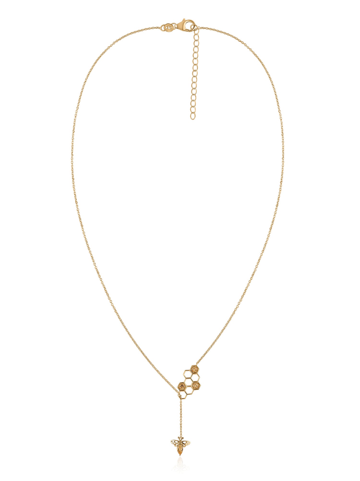 A tribute to the beauty of nature, this gold-plated silver necklace showcases a refined honeycomb design paired with a sparkling bee charm. Minimal yet striking, it adds a warm golden glow to any outfit — perfect for trend-lovers and nature enthusiasts.