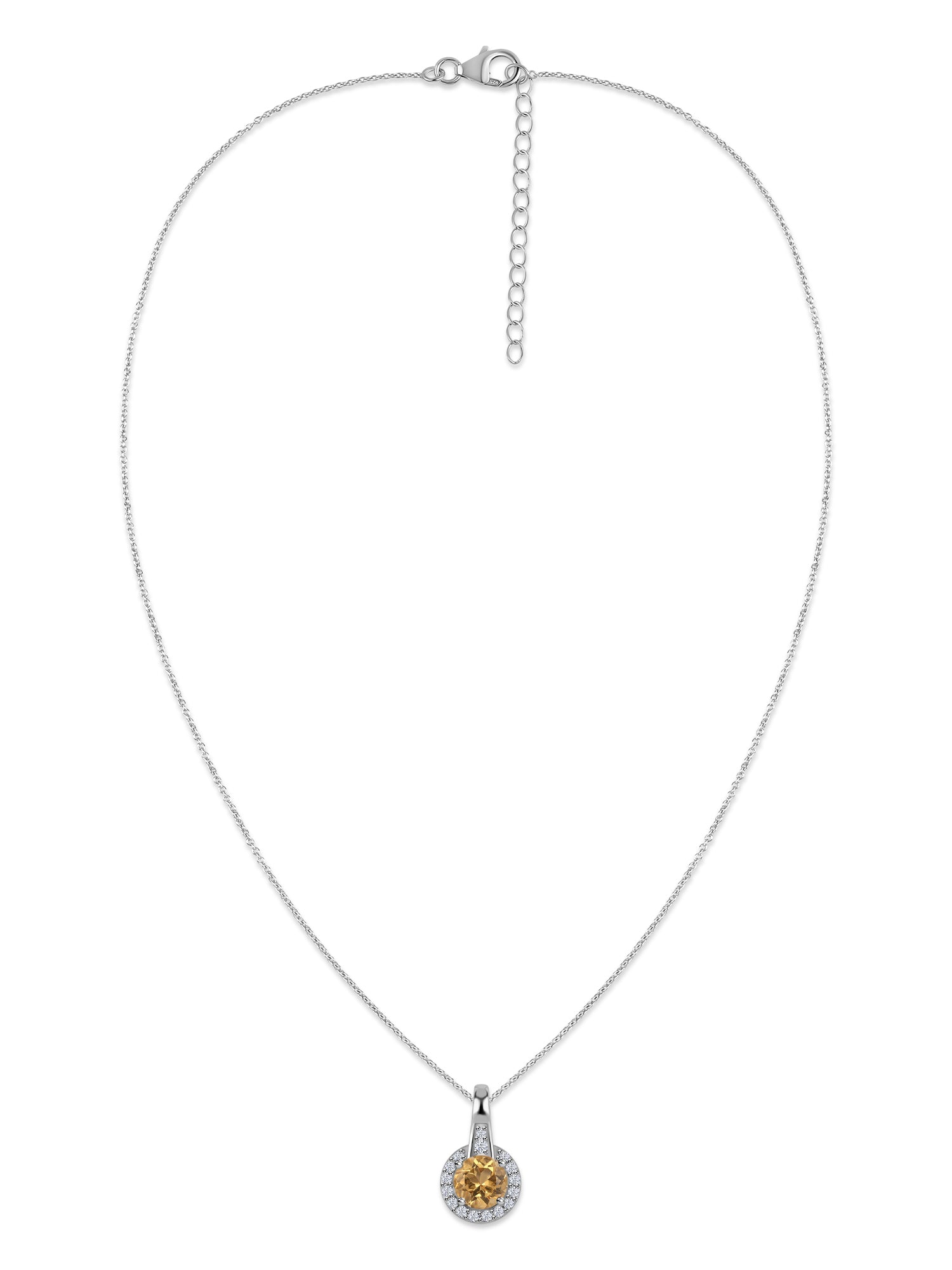 Bask in the glow of natural citrine framed with shimmering white topaz. This radiant silver pendant symbolizes positivity, light, and effortless grace.