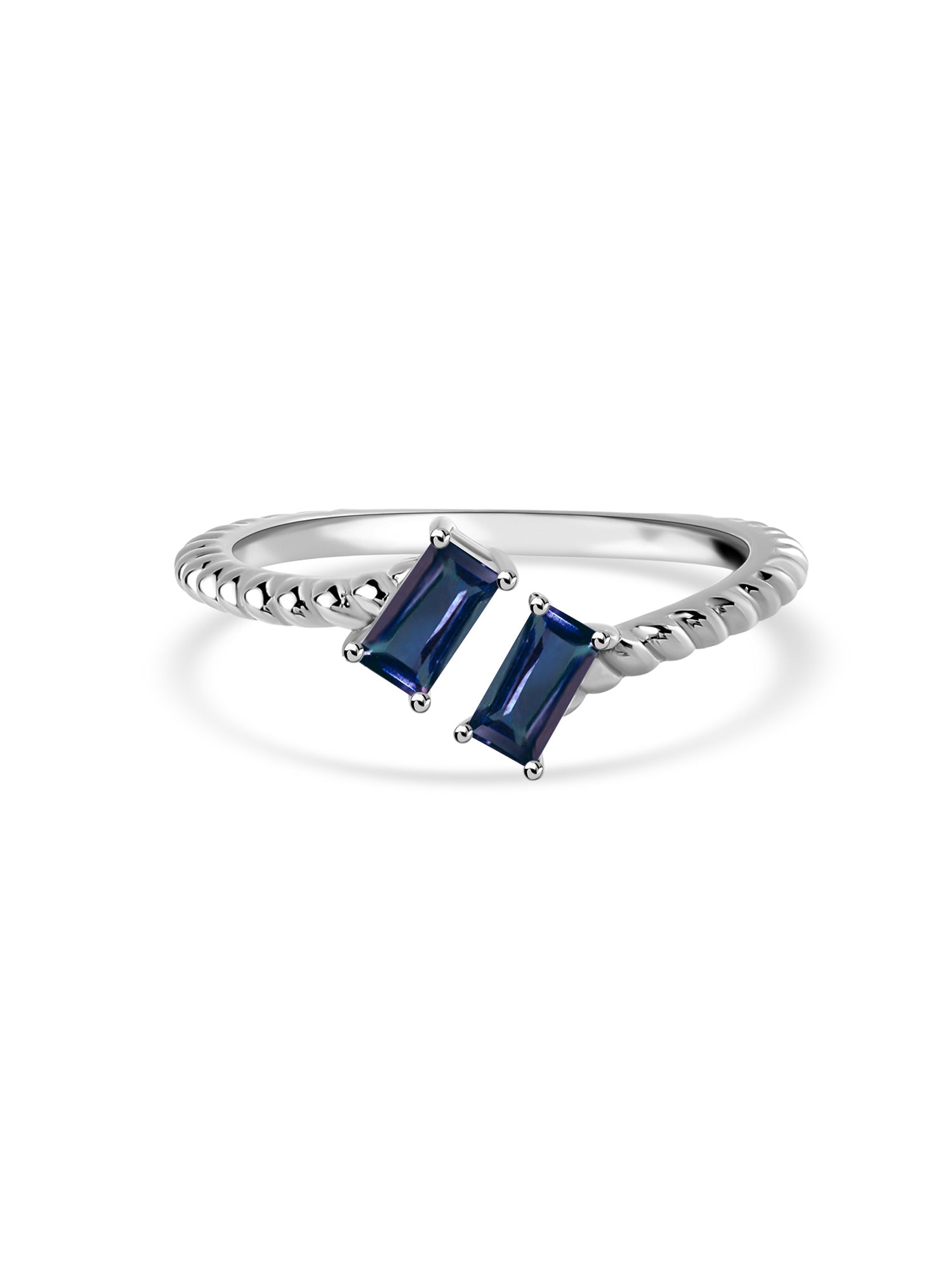 Add a clean edge to your jewellery game with this Baguette silver ring, set with twin lab created alexandrite baguettes. The modern silhouette and blue tones create a fresh look that pairs beautifully with workwear or weekend casuals.