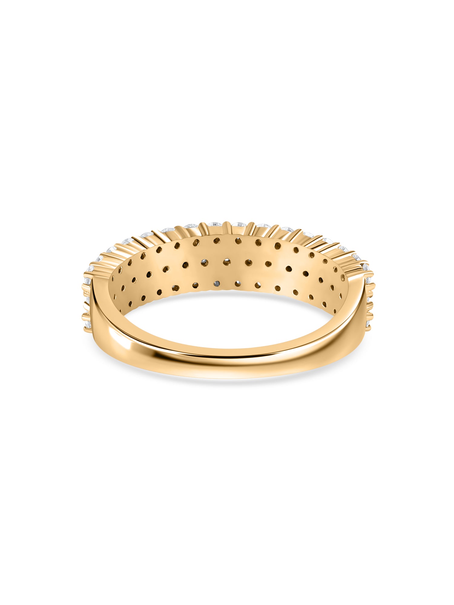 A three-row ring that sparkles with lab-grown diamonds that mimic the same shine of the natural diamonds in pure gold that's hallmarked. We are manufacturers, hence you always get the best quality with factory-direct prices.