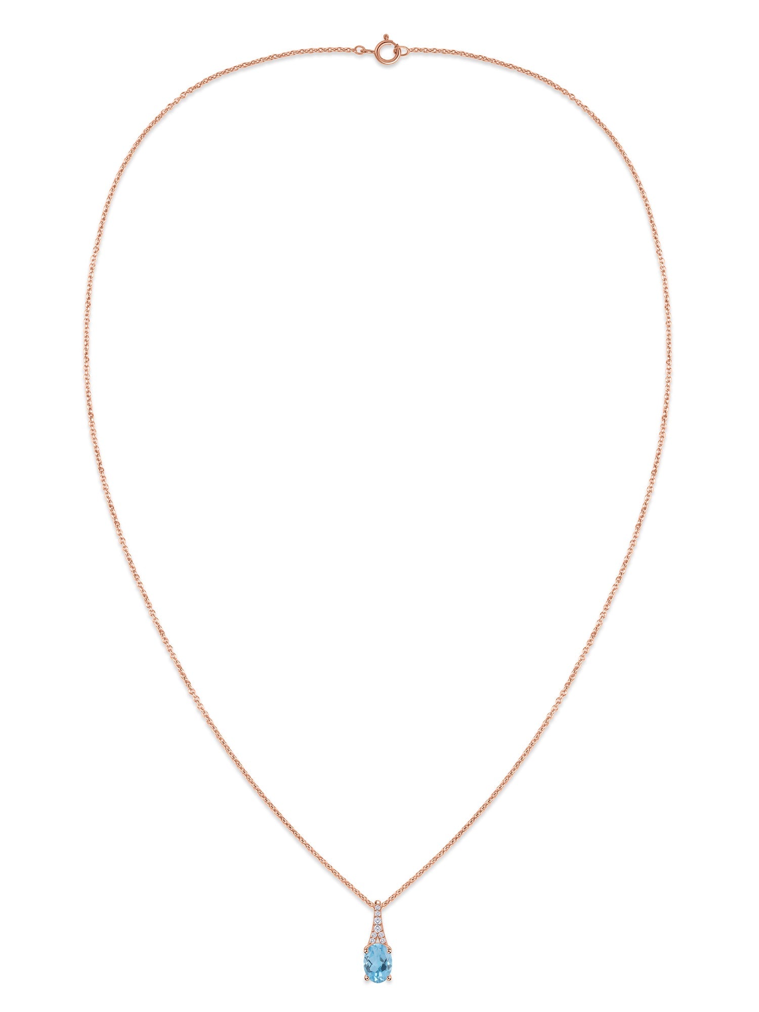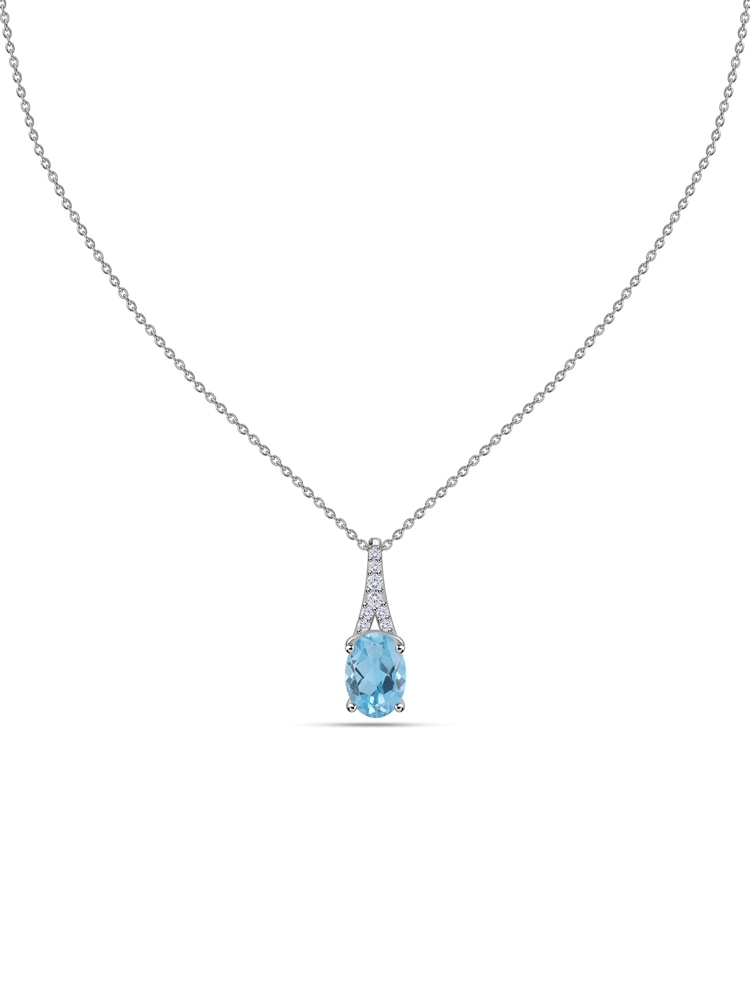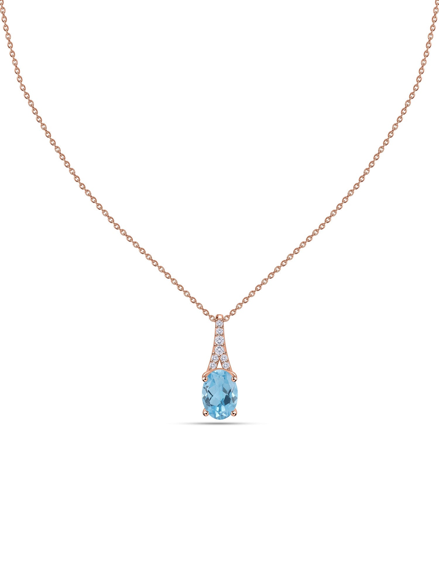 Blue Topaz Oval Gold Pendant with Sparkling Diamonds