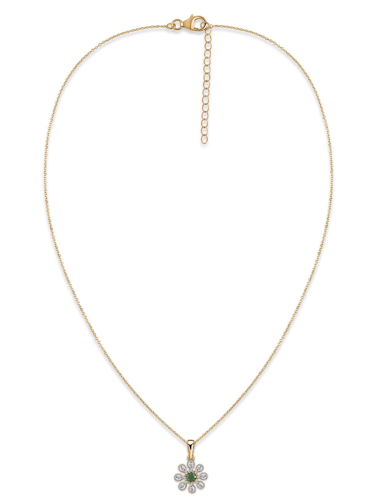 Inspired by the marigold flower, this pendant design is for you that has a center of natural green emerald and has petals of natural white zirconia all around, making it another unique design by ornate jewels.
