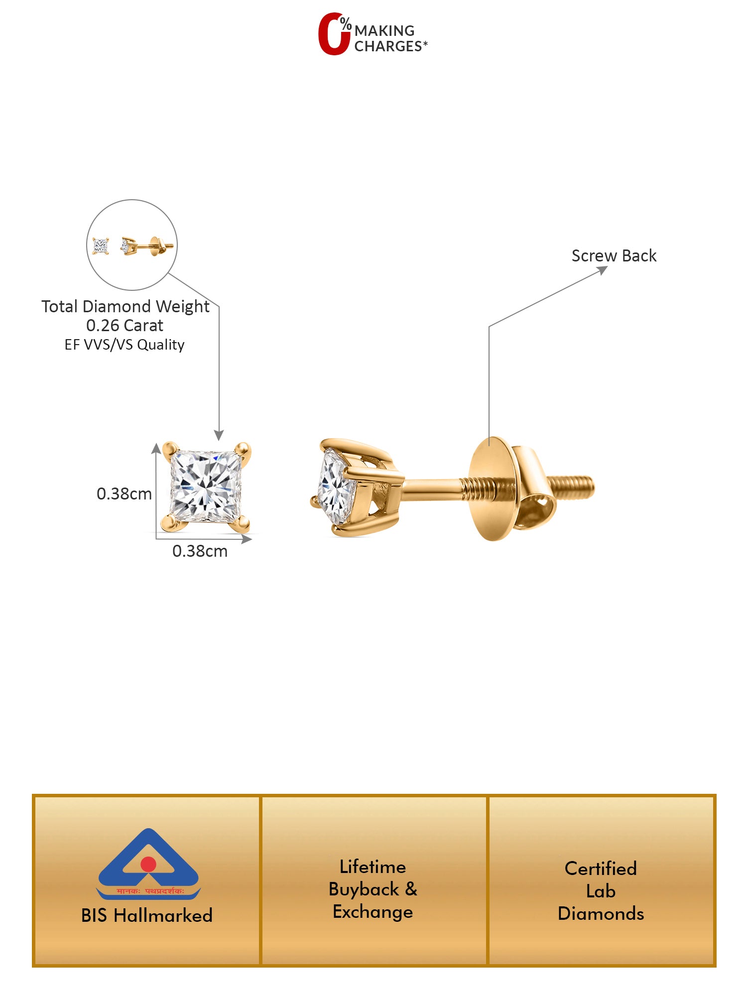 Lab-grown diamond Studs set in Gold make a great earring for daily office wear jewelry for women. The cubic design adds a modern and edgy touch, while the brilliance of the diamonds elevates the overall allure of these earrings.
