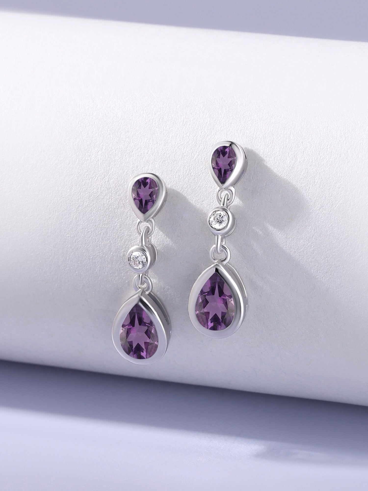 These stunning earrings for women feature rich sparkling Natural African Amethyst gemstones, elegantly suspended in a sleek drop design.