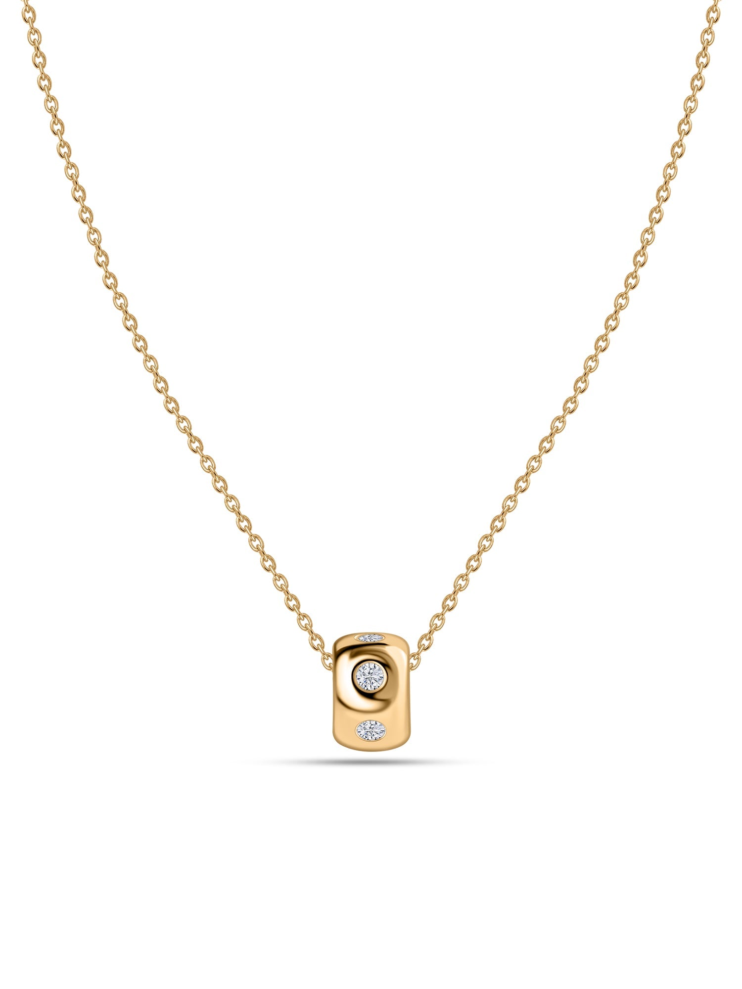 Elevate your everyday look with this sleek and minimal gold pendant featuring a luminous lab diamond. Its clean form brings a contemporary edge while remaining effortlessly wearable.