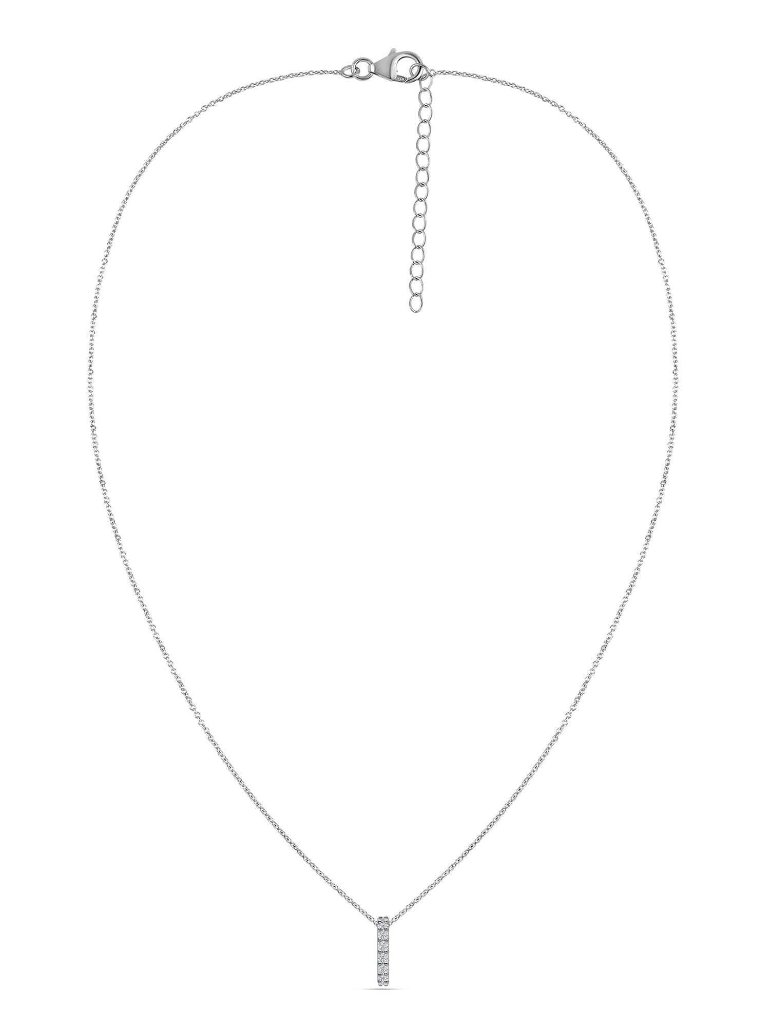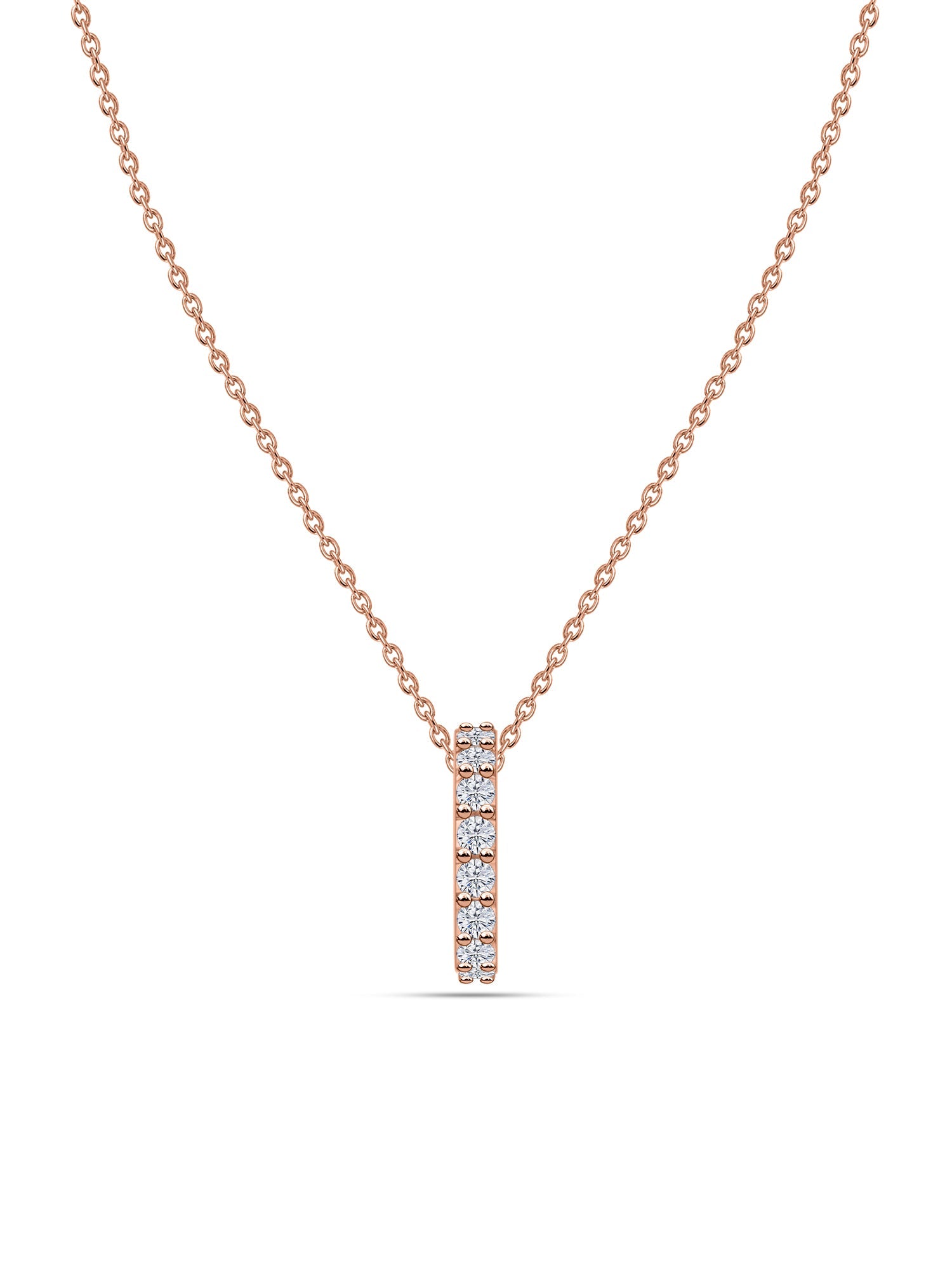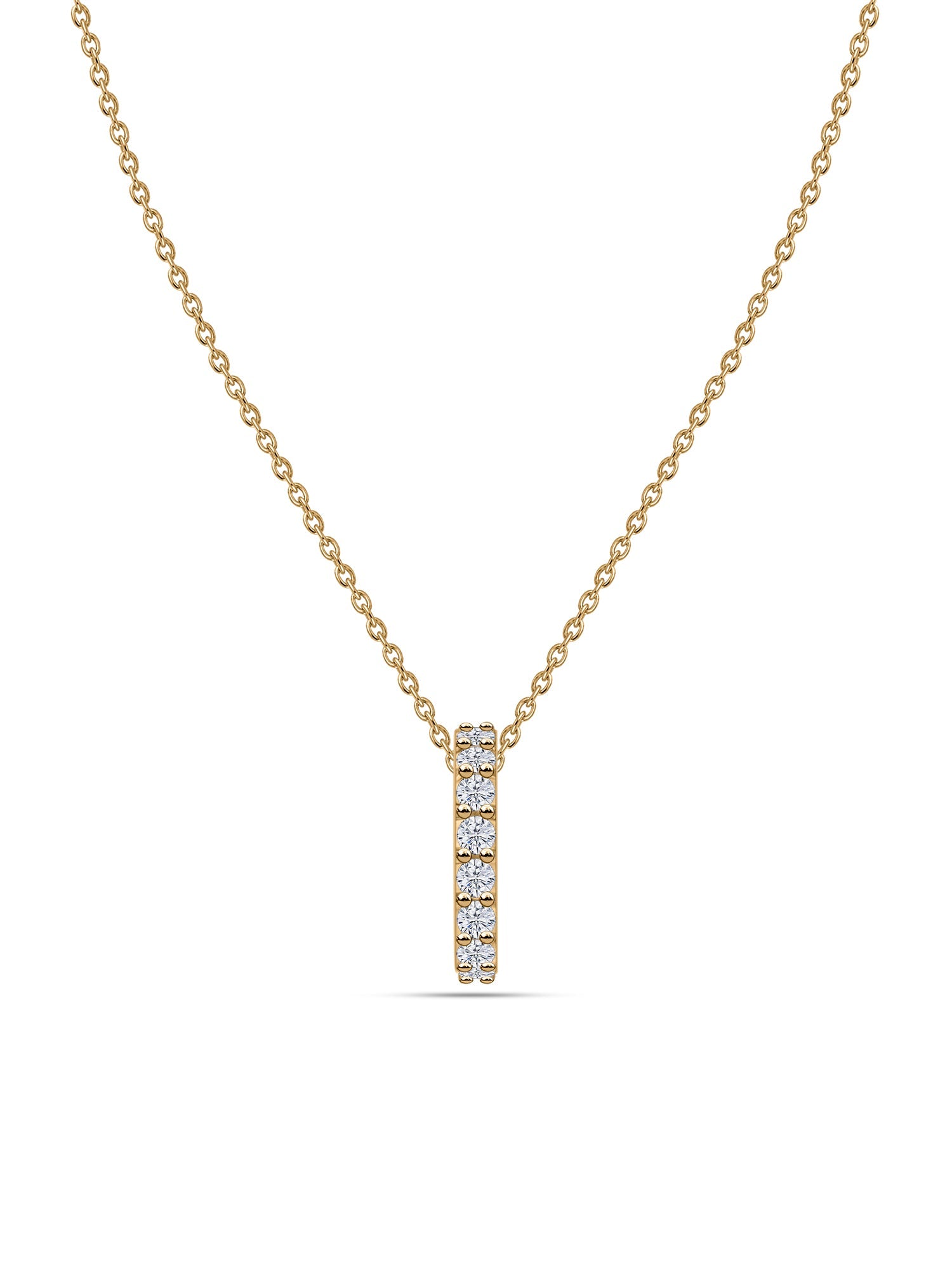 A refined statement of elegance, this vertical gold pendant gleams with a line of radiant lab diamonds. Its geometric silhouette is ideal for both modern styling and classic layering.