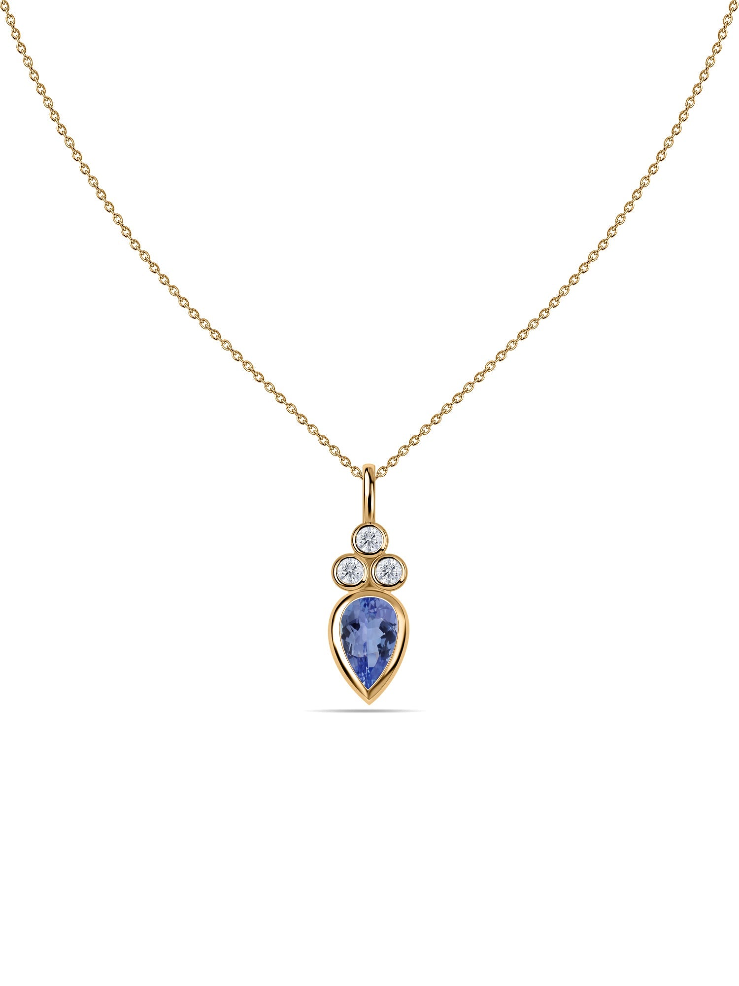 Graceful and luminous, this tanzanite gold pendant features a natural gemstone framed by delicate brilliance. Designed to symbolize purity and poise, it’s the perfect piece to add a soft glow of elegance to your everyday style.