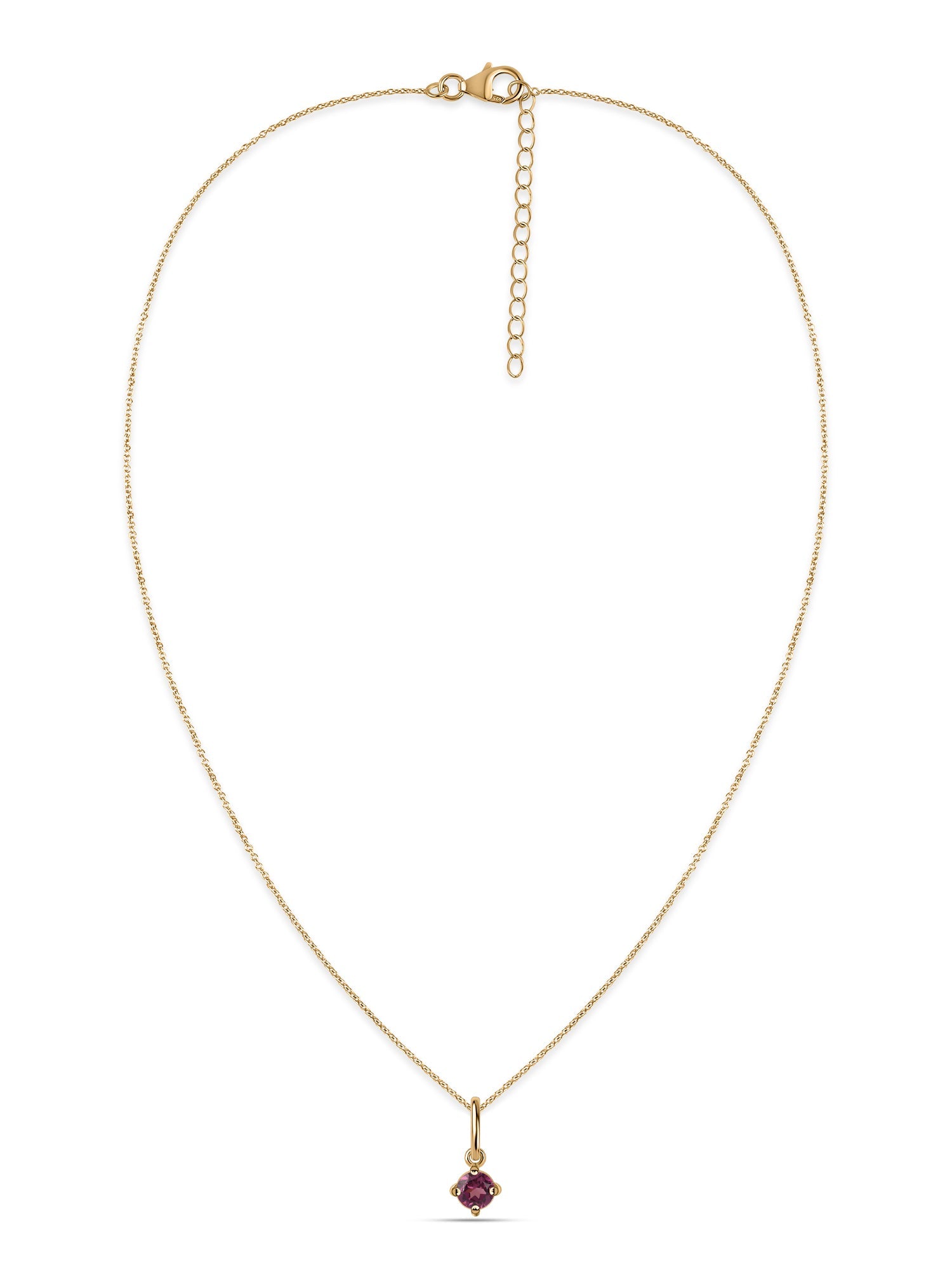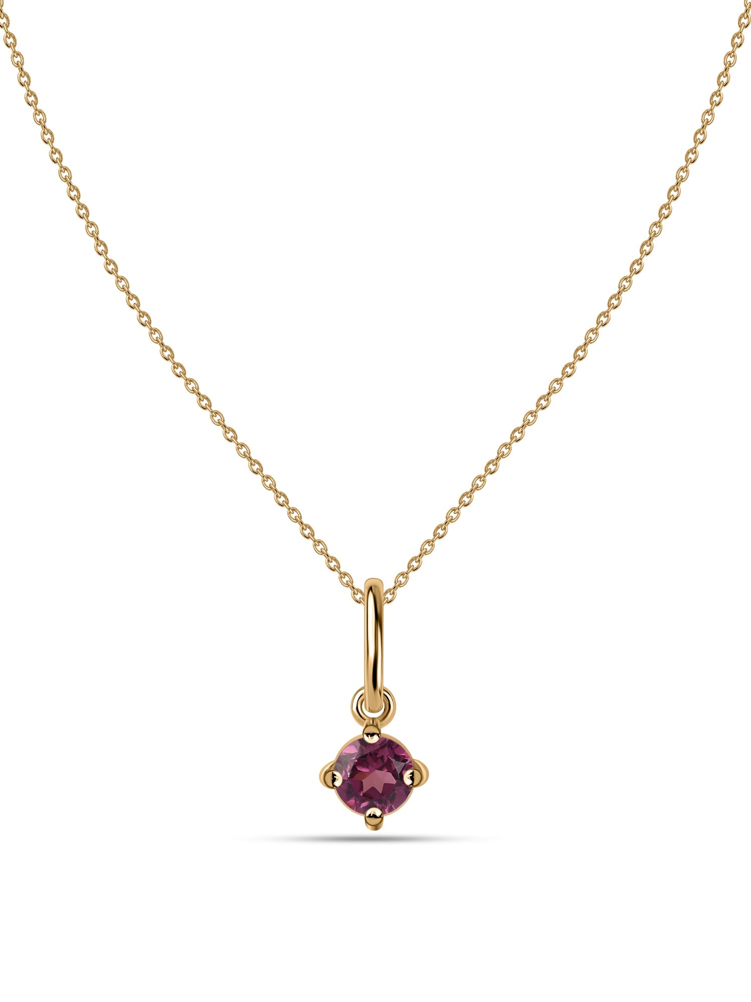 Rich with romantic tones, this rhodolite pendant is a bold expression of elegance. Suspended from a gold chain, it’s designed for those who love timeless pieces with personality.