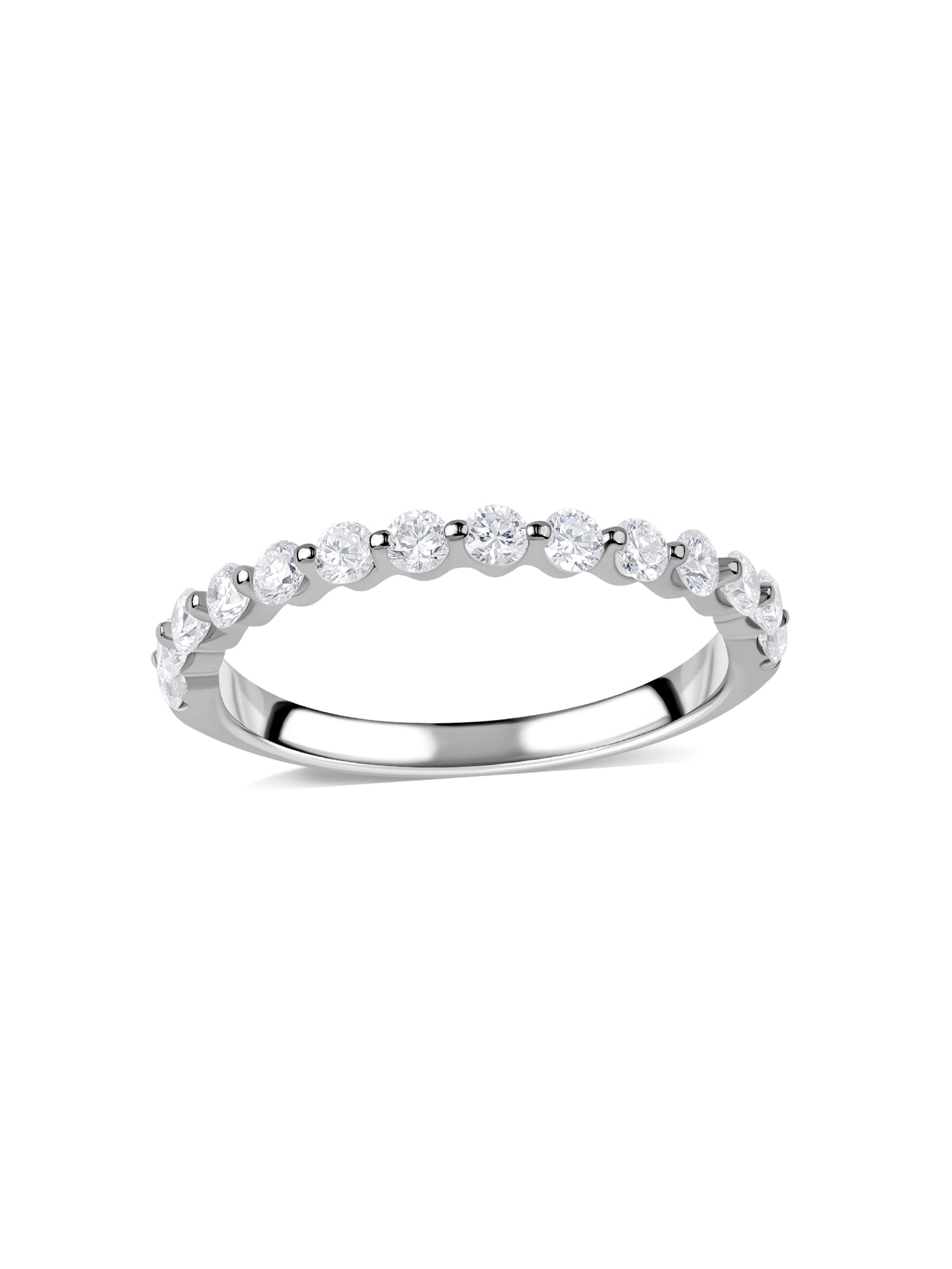 A gold half eternity band set with shimmering lab-grown diamonds. The ideal blend of understated elegance and daily wear versatility.