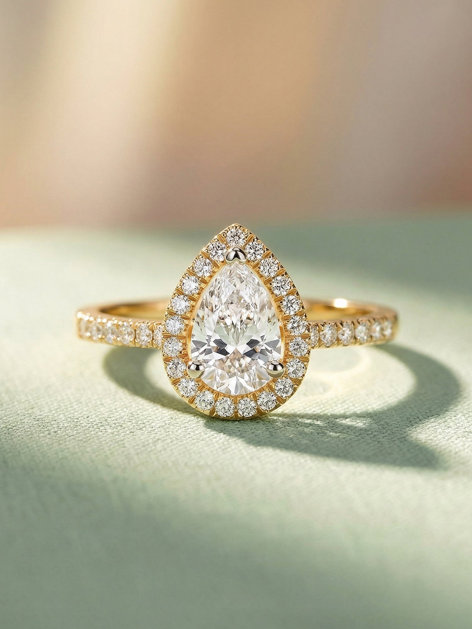 Fulfil your shine daily with this sparkling diamond pear-shaped solitaire ring made with 1.5 carat pear lab diamonds in certified and hallmarked gold. Want to buy a wedding ring for a woman online? Look no further—this is the best wedding ring at the lowest price. We are manufacturers, so you always get the best quality with factory-direct prices.