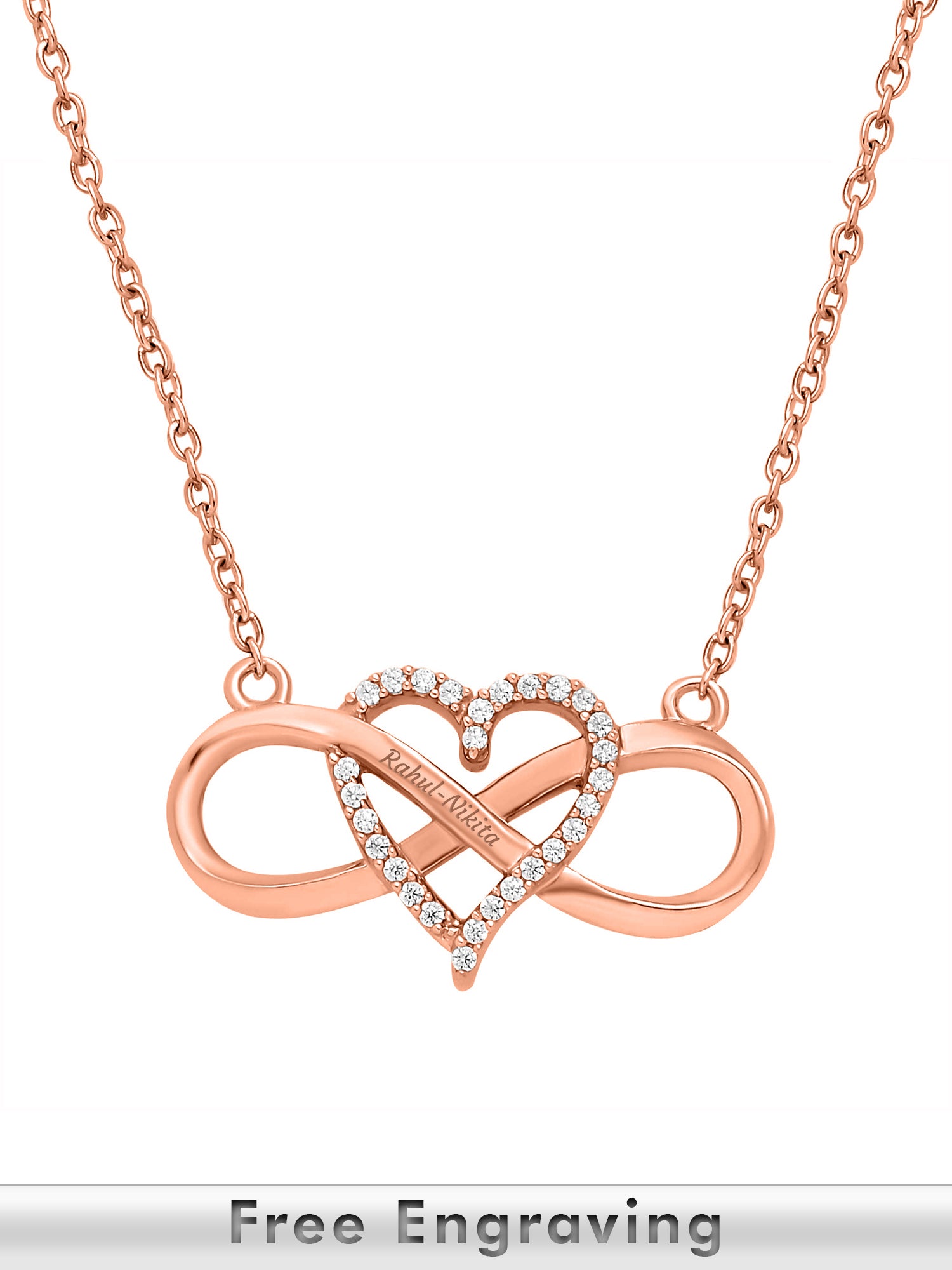 Explore the appealing world of the infinity pendant chain with Ornate Jewels Collection, where exquisite designs and ravishing craftsmanship converge to create stunning pieces of ethereal beauty. Our collection boasts an array of amazing designs, each intricately crafted to perfection. The use of best-lab-created American diamonds ensures a diamond like sparkle that rivals genuine gemstones. Every infinity pendant chain comes with an authenticity certificate, assuring you of the quality and authenticity of your purchase. With a commitment to excellence, Ornate Jewels offers a generous 1-year warranty, providing peace of mind and reinforcing our confidence in the durability of our products. Enjoy the convenience of express shipping, ensuring your cherished piece of beautiful jewellery reaches you promptly. Raise up your style with an Infinity necklace that not only symbolises eternal love but also reflects the pinnacle of richness and grace from Ornate Jewels Collection. So, hurry up and get your infinity necklace now!