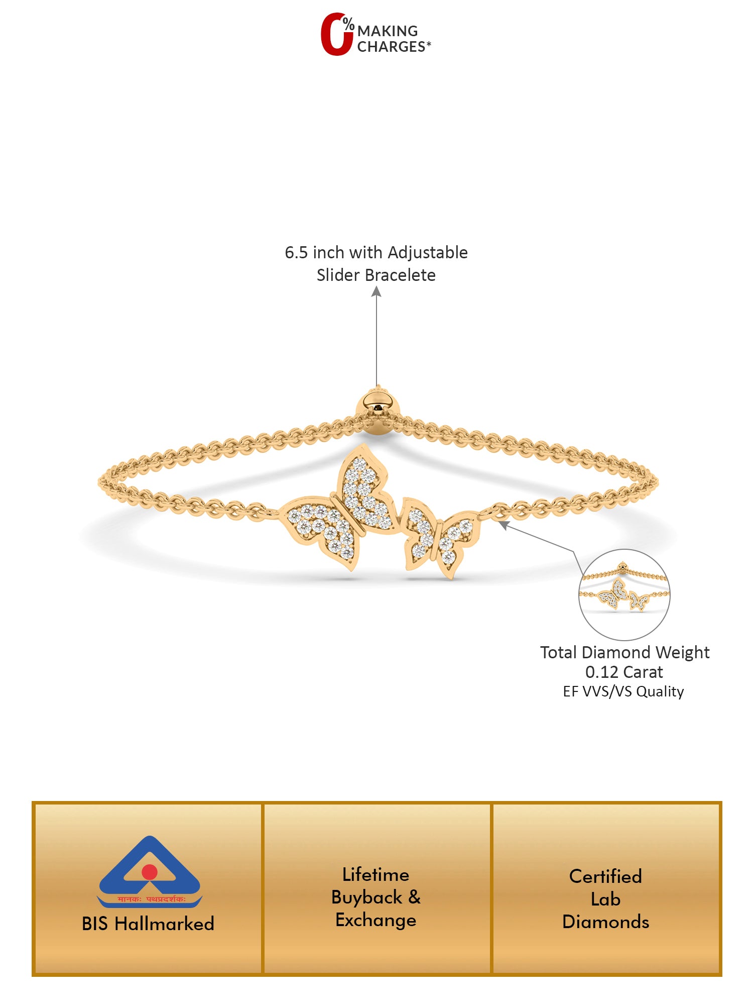 Lab Grown Radiant Butterfly Diamond Bracelet In Gold