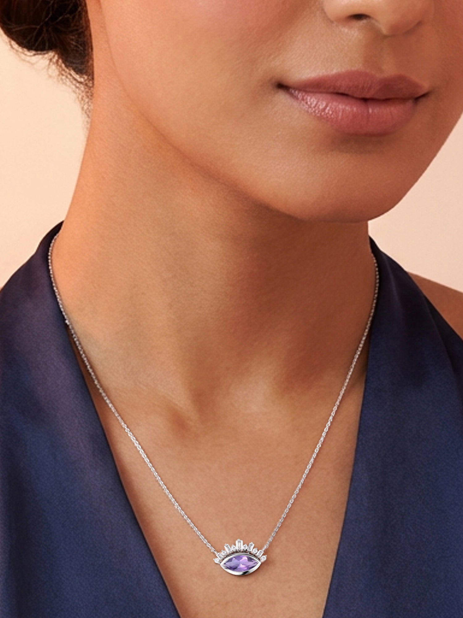 Infused with a touch of tradition and a splash of modern minimalism, this silver necklace features a beautiful Natural Purple Amethyst stone in a handcrafted ethnic frame. Perfect for everyday styling or gifting, this design radiates soulful elegance.