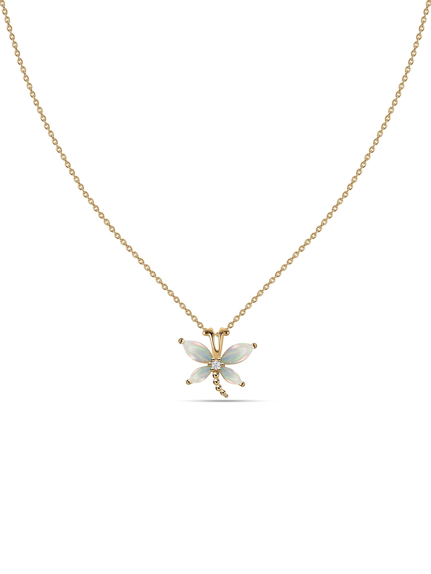 This nature-inspired pendant glows with the iridescent beauty of natural Ethiopian opals and lab-grown diamonds. Designed in a graceful silhouette, it evokes innocence, dreams, and the gentle magic of belief. Let it flutter close to your heart as a symbol of wonder, femininity, and enchantment.