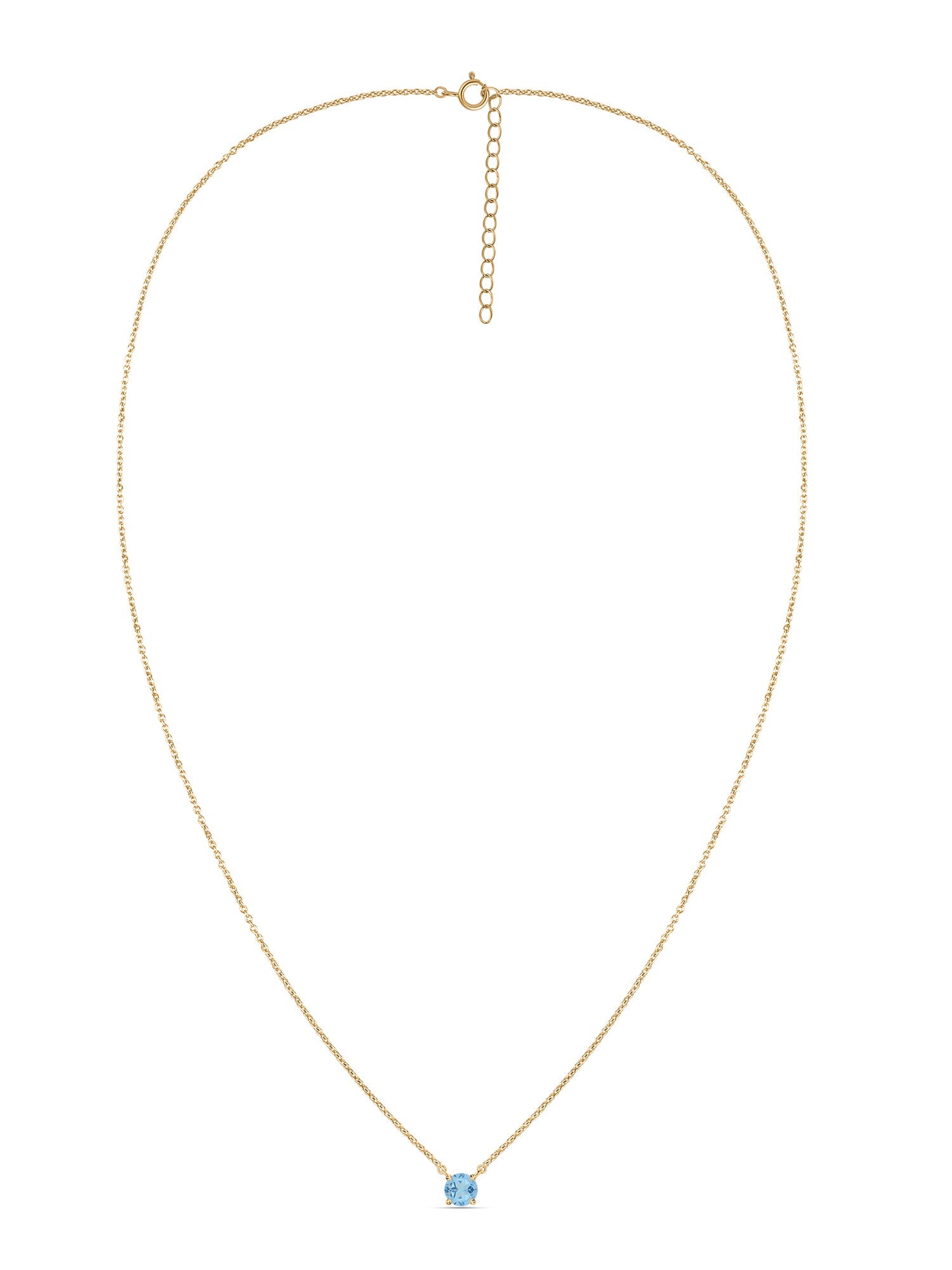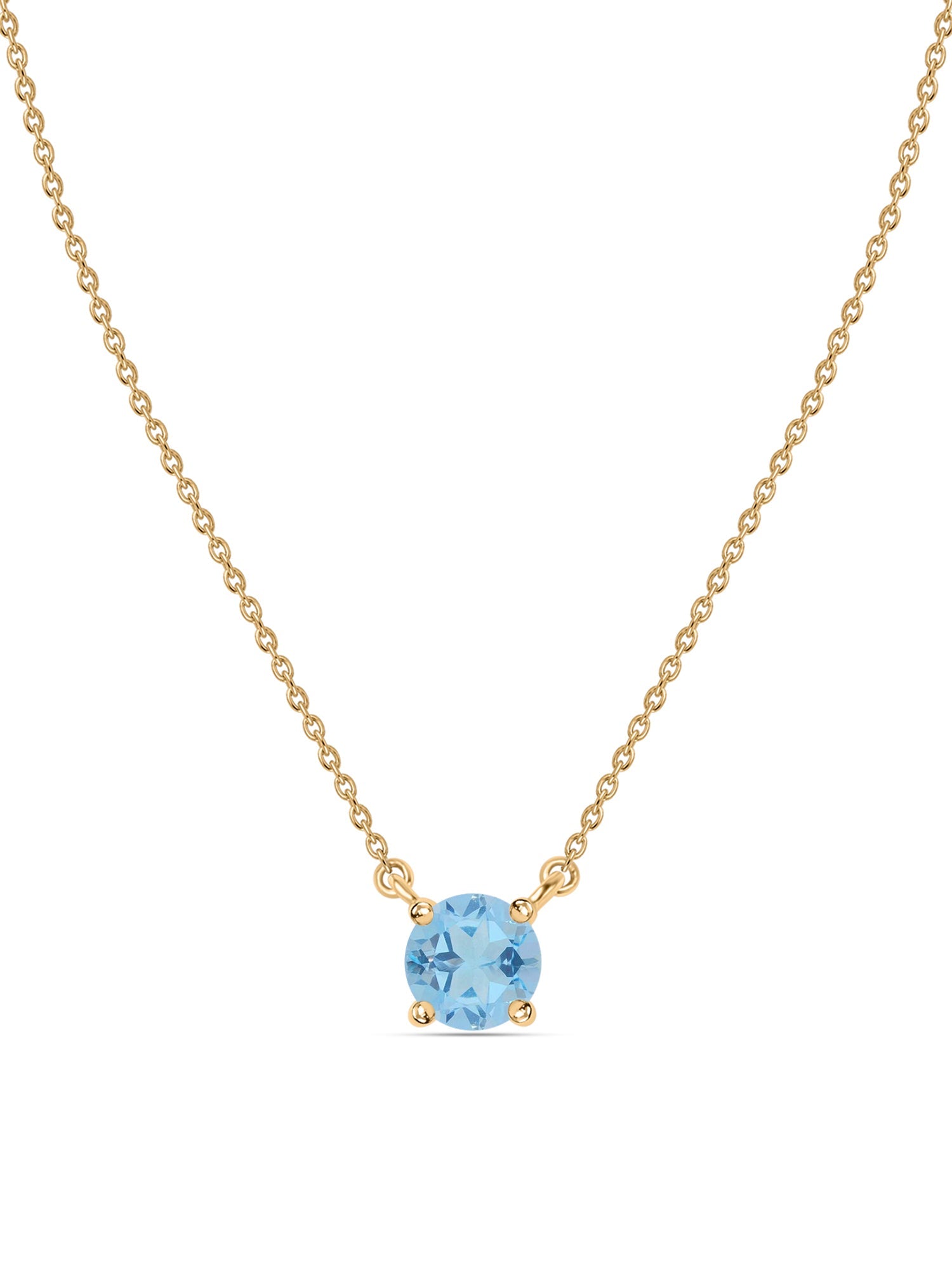 Simple yet captivating, this swiss blue topaz solitaire necklace in gold celebrates timeless beauty. The natural gemstone centerpiece catches the light with every movement, making it a graceful choice for effortless everyday elegance or a meaningful gift.