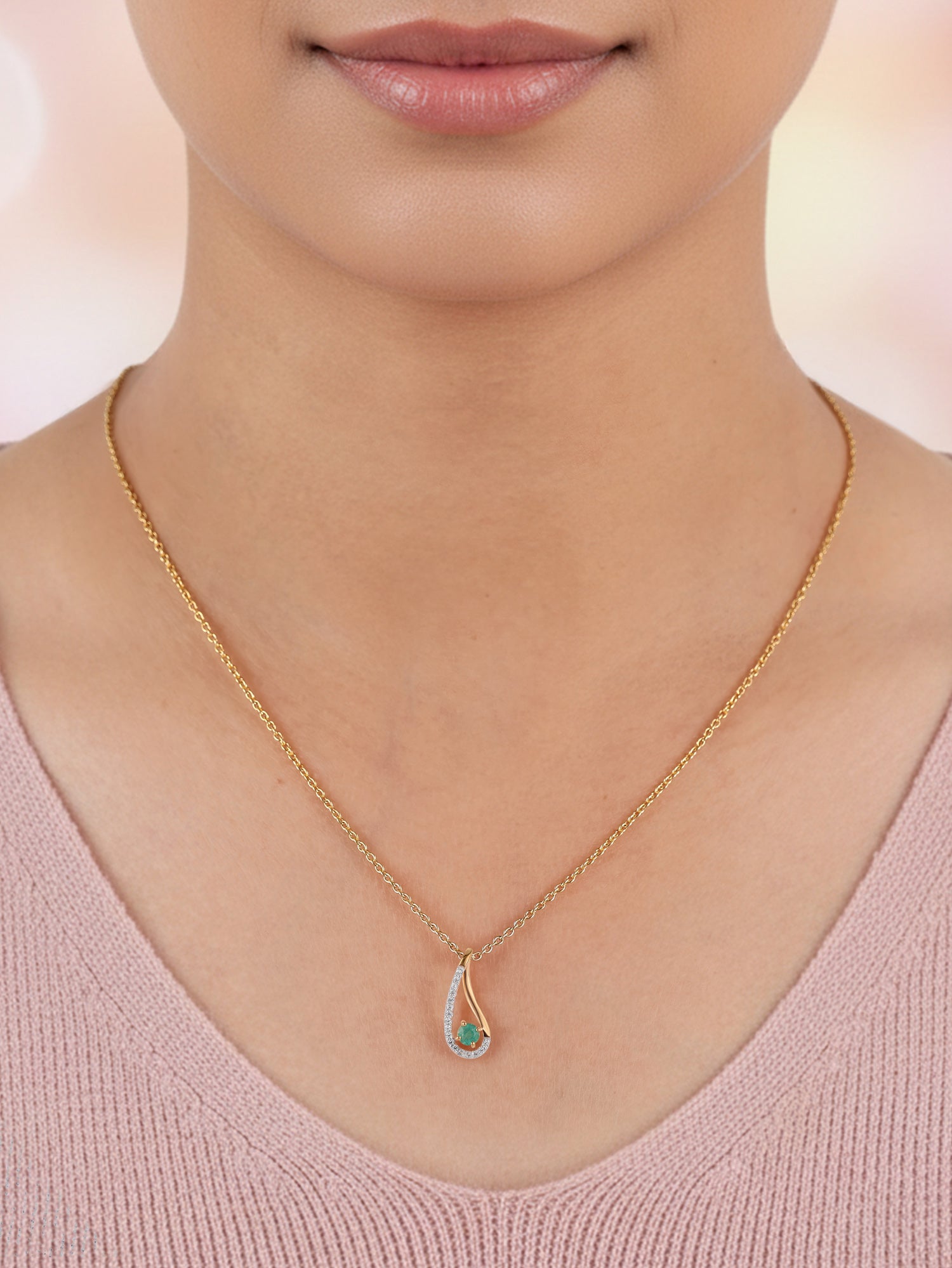 Inspired by the raindrops, this pendant is designed for you that has a center of natural green emerald and has sides of natural white zirconia on one side, making it another unique design with ornate jewels.