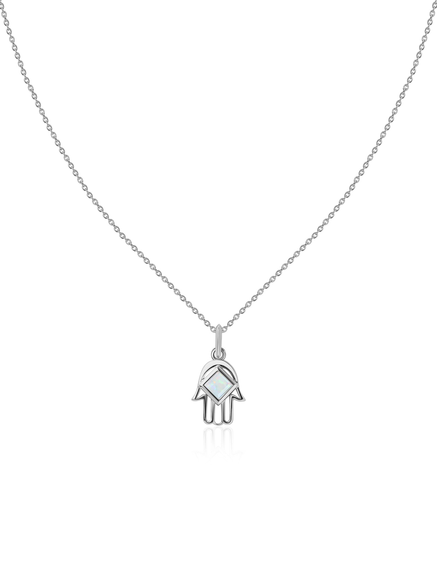 Crafted in sterling silver, this pendant showcases the protective Hamsa hand, accented with a Natural Ethiopian Opal. Thought to attract calm and positive energy, this talisman is both a beautiful amulet and a style-forward statement.