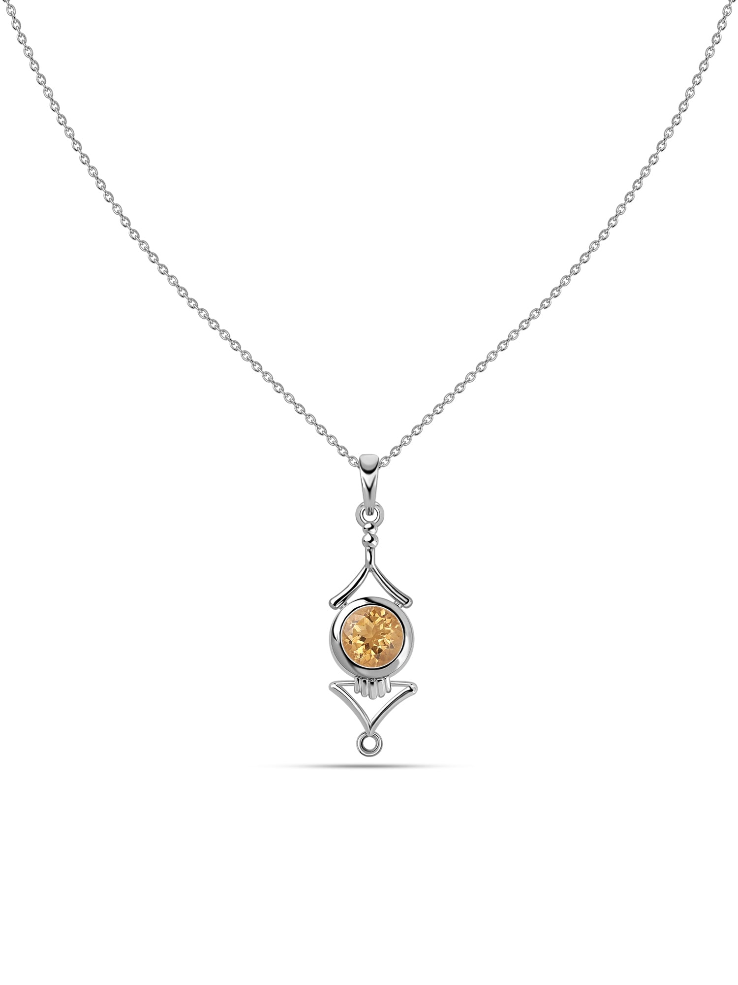 Command attention with this royal-inspired silver necklace, showcasing a citrine nestled beneath a crown of shimmering accents. The majestic design makes it a true statement piece—bold yet elegant. A must-have for women who love jewellery with symbolic flair and contemporary elegance.