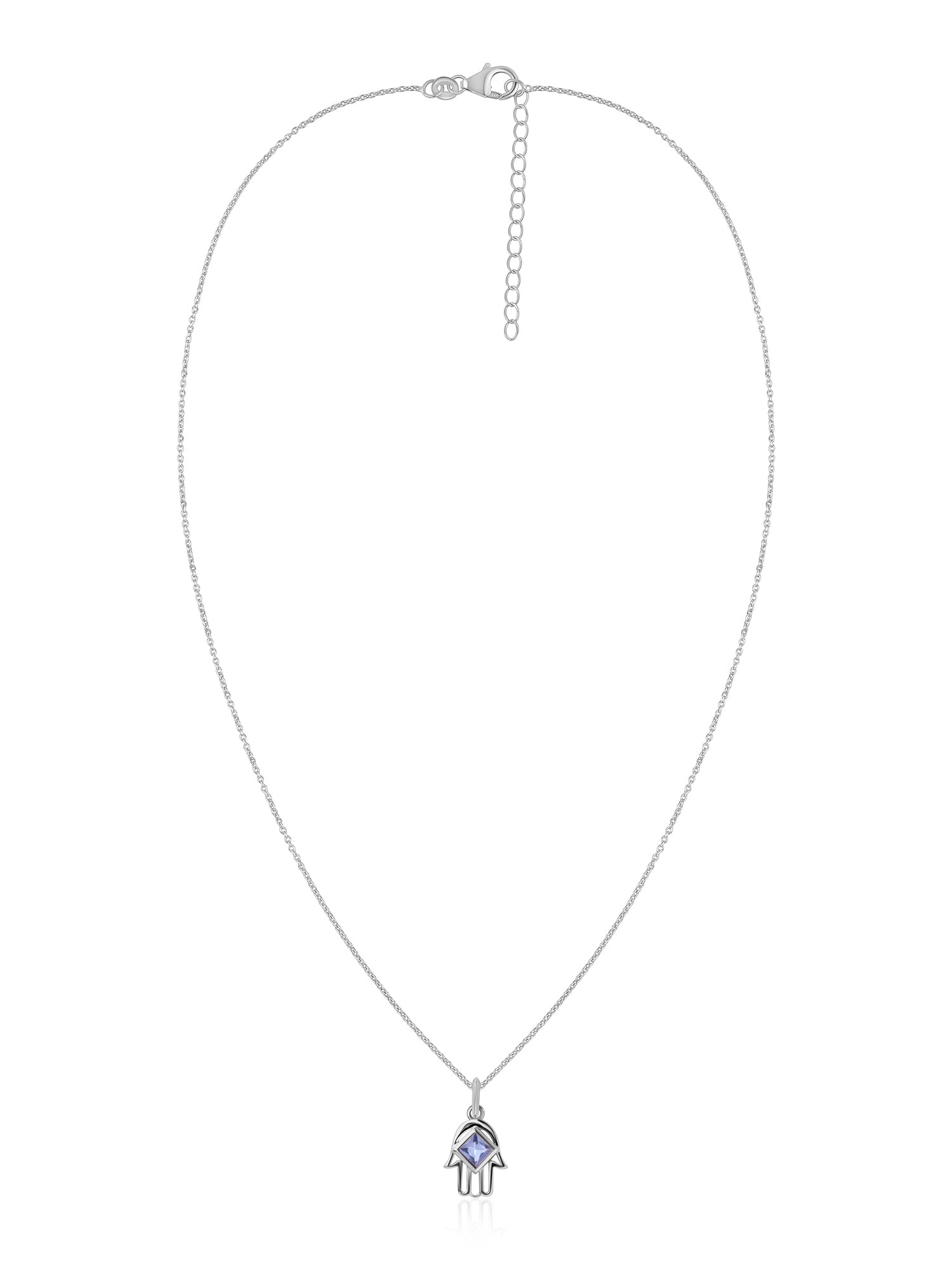 Crafted in sterling silver, this pendant showcases the protective Hamsa hand, accented with a Natural Tanzanite. Thought to attract calm and positive energy, this talisman is both a beautiful amulet and a style-forward statement.