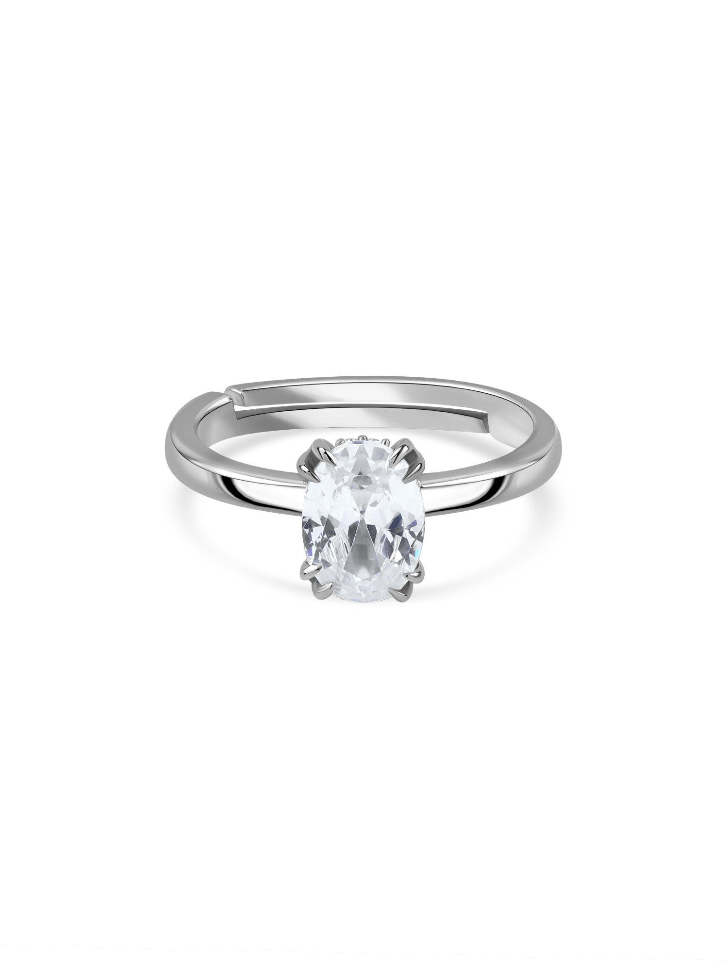 Modern sophistication meets comfort in this adjustable solitaire ring set with a sparkling oval CZ stone. Crafted in 925 sterling silver, it embodies timeless brilliance with a sleek open design for a perfect fit. Ideal for everyday elegance or gifting moments that shine forever.