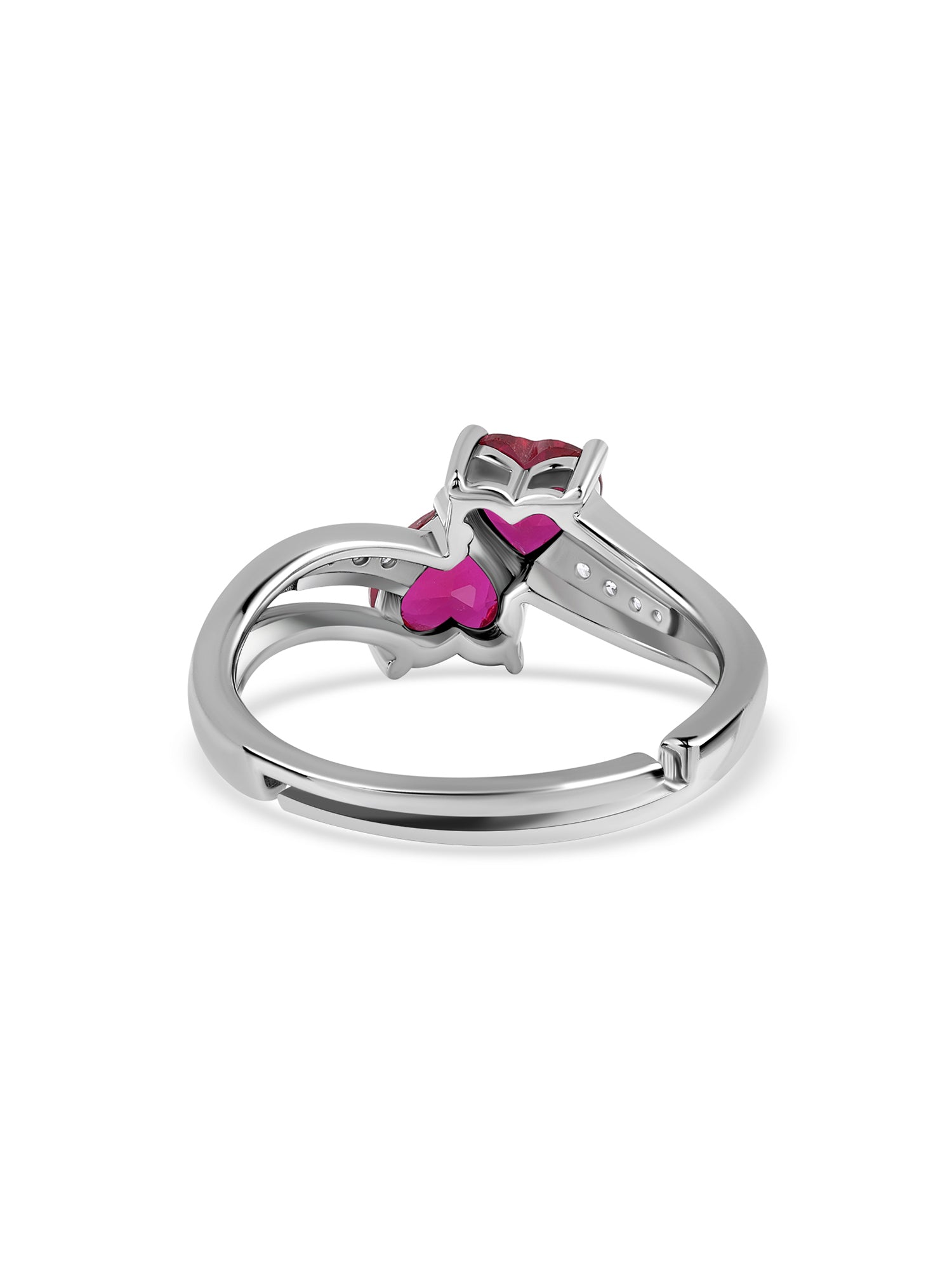 Celebrate love and elegance with this silver ring featuring a vivid ruby red heart-shaped CZ alongside a sparkling white round CZ. The dual-stone design symbolizes passion and purity, making it a perfect gift of affection or a striking addition to your personal collection.