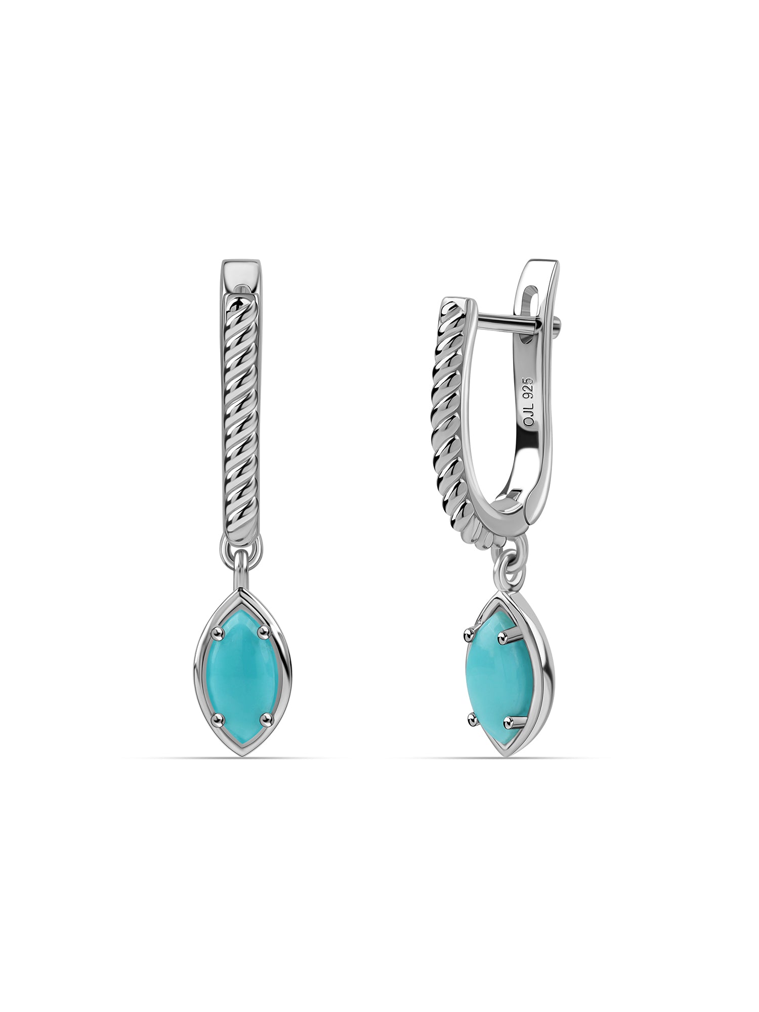 Crafted in sleek silver, these drop earrings showcase striking marquise-cut turquoise in a clean, contemporary silhouette. The vivid blue gemstone adds a refreshing pop of colour, while the elongated design enhances elegance and movement. Perfect for day-to-evening styling, these earrings bring effortless sophistication to any look.