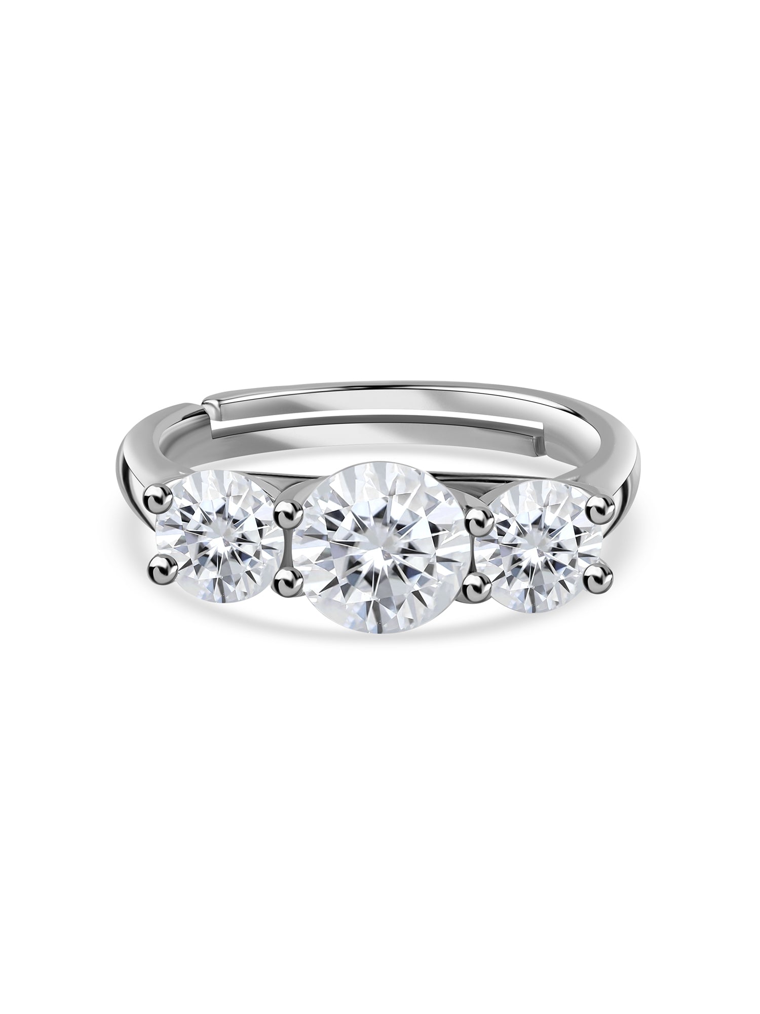 Diamonds are usually the standout feature in three-stone rings, as they convey a story of love and commitment due to their stunning sparkle, durability, and timelessness. Our American diamonds give you the same choice of creating the perfect ring for her at a low price. The trio of CZ diamonds in a three-stone ring amplifies their magnificence, creating a breathtaking display of light and sparkle.