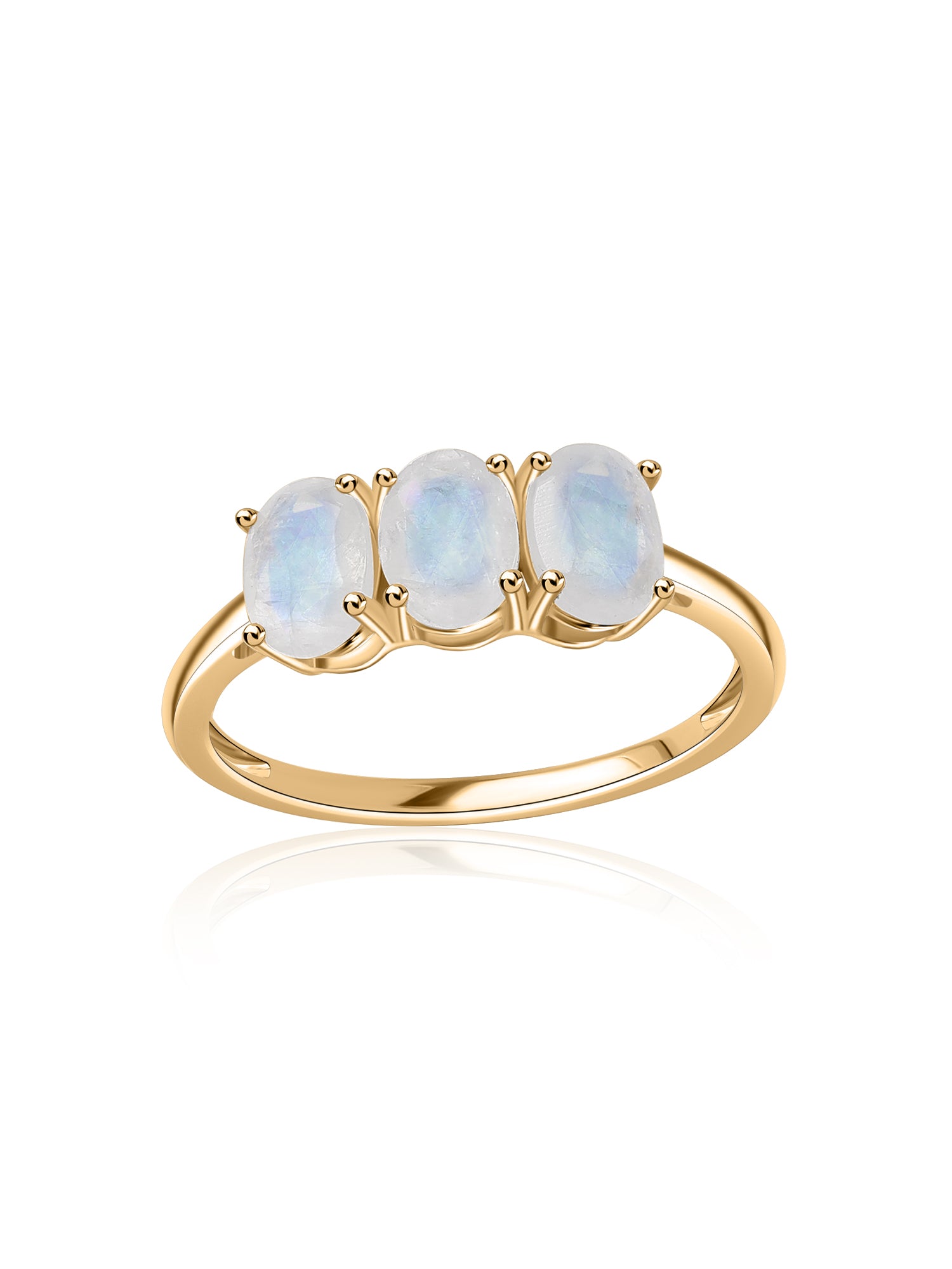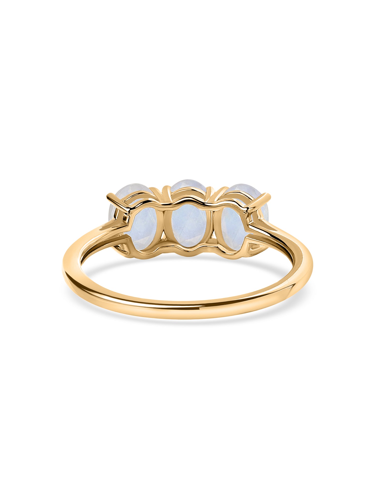 Three luminous moonstones sit gracefully in a sleek silver setting, creating a soft play of light with every movement. A modern yet delicate piece that feels dreamy, feminine, and effortlessly stylish.