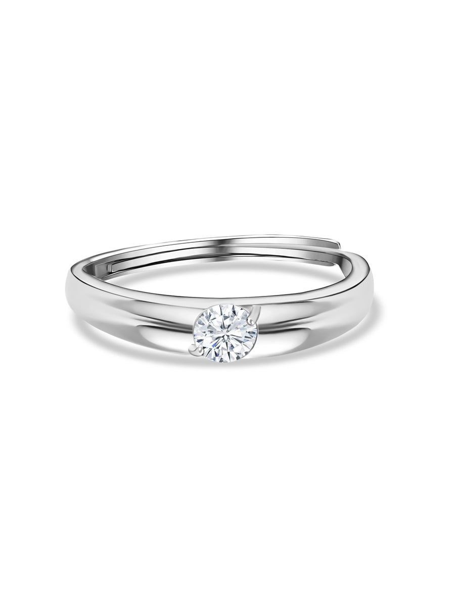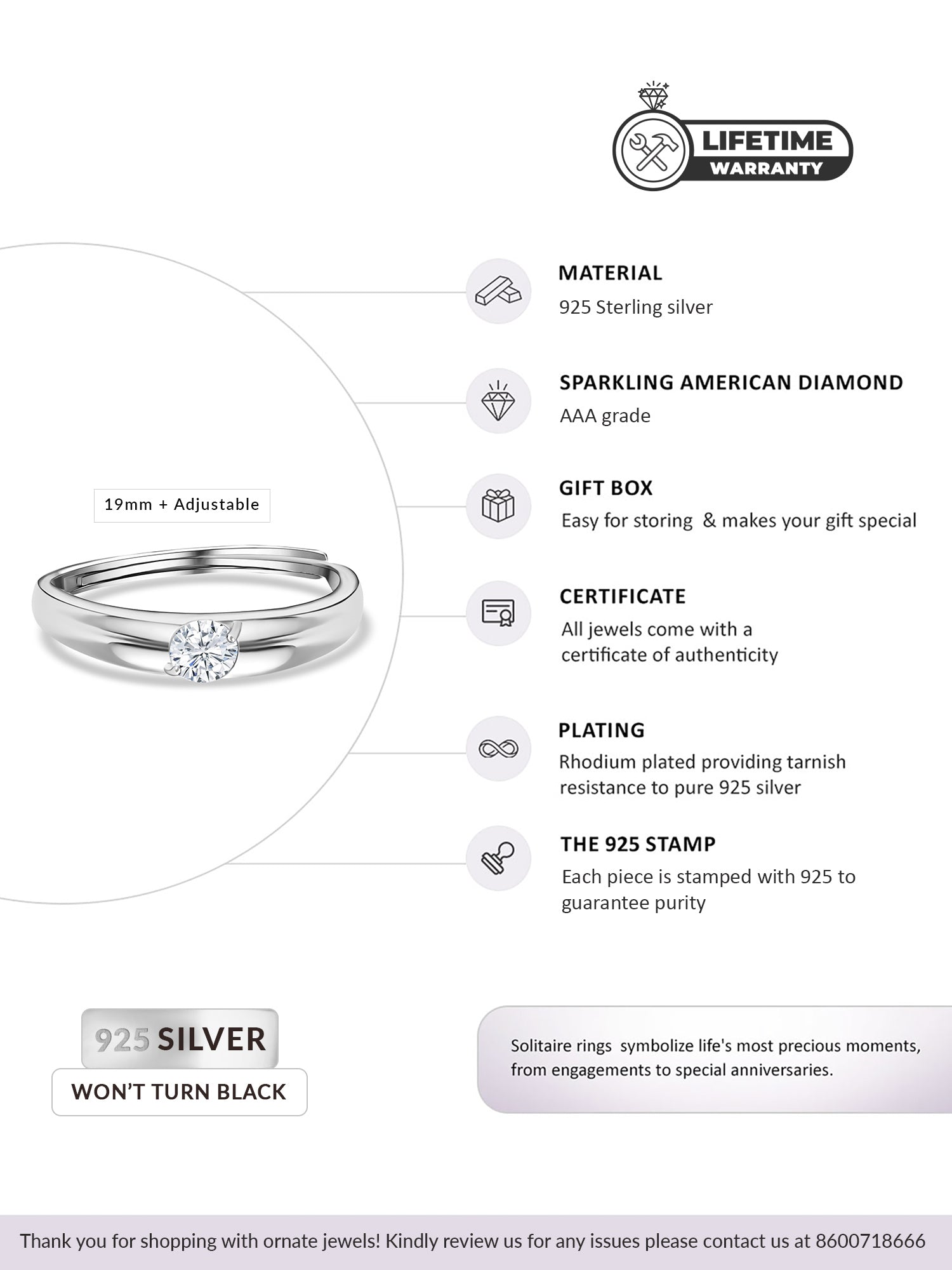 Studded with a center American diamond solitaire this pure silver engagement band ring for men is a simple ring design that can be worn daily. A great gift for a man in your life
