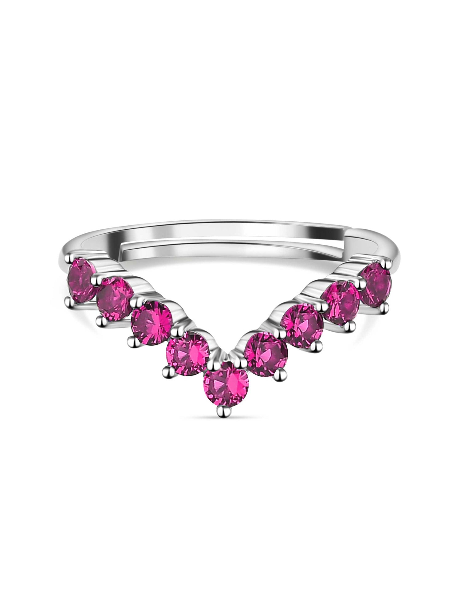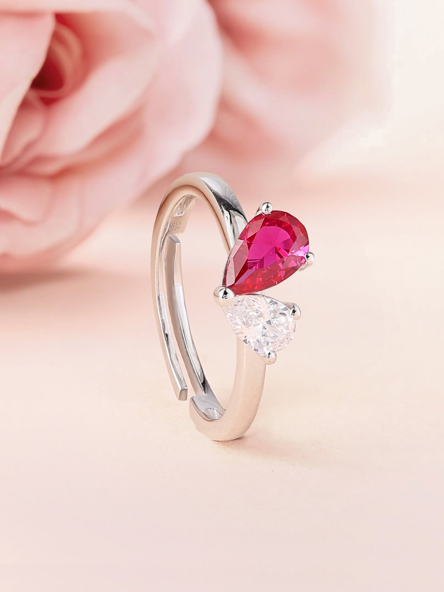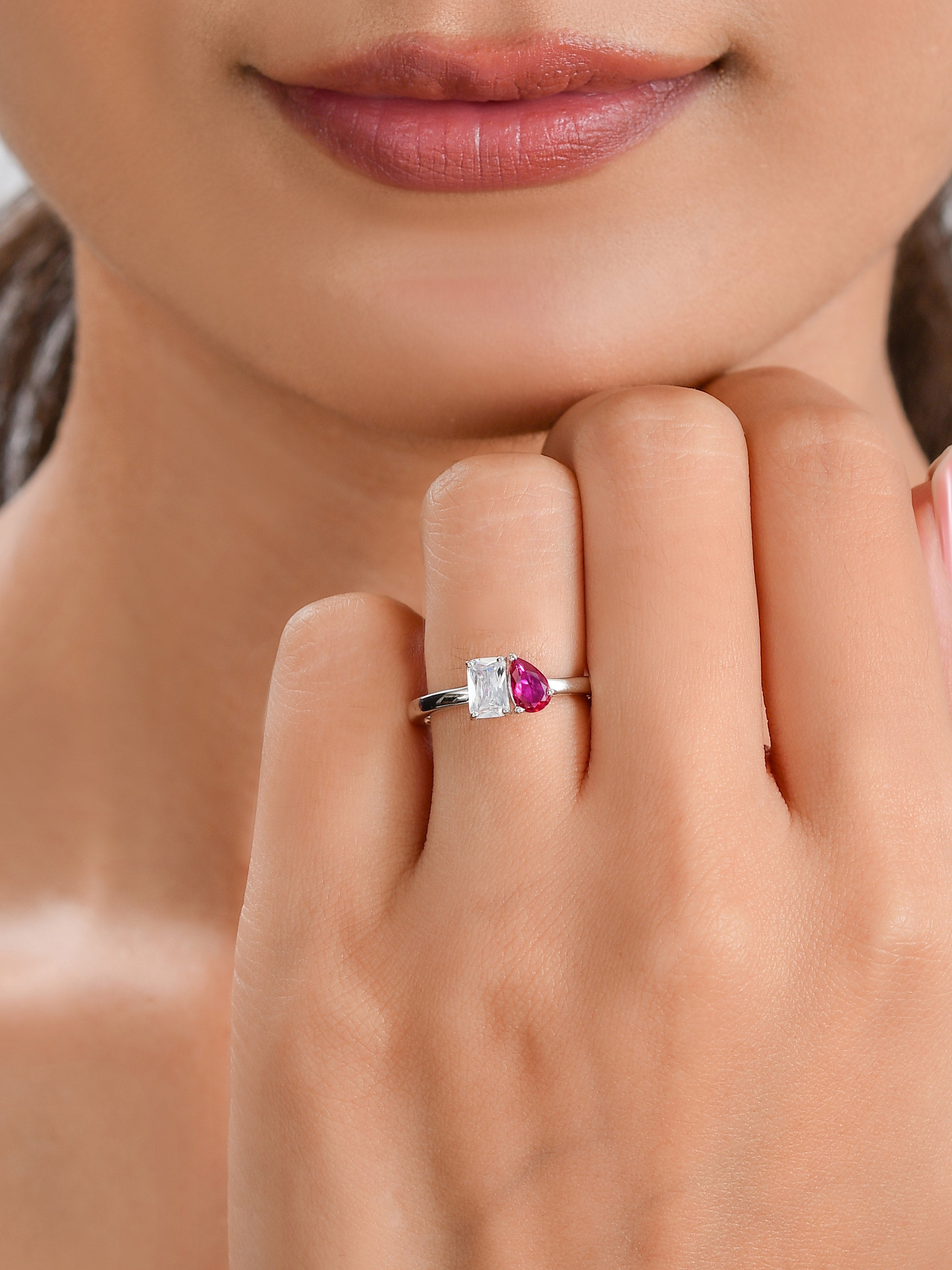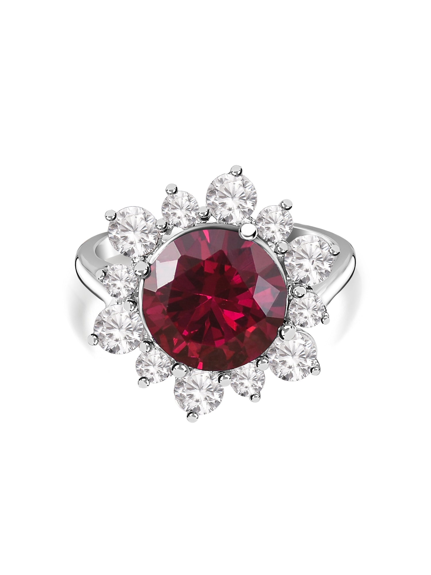 - Red Ruby Halo Silver Ring: The Red Ruby Halo Silver Ring is a beautiful piece designed for women. Its eye-catching red ruby, encircled by a sparkling silver halo, makes it a versatile jewelry suitable for any occasion. You feel gorgeous and fashionable when you wear this exquisite ring, which gives your appearance a touch of refinement and charm.