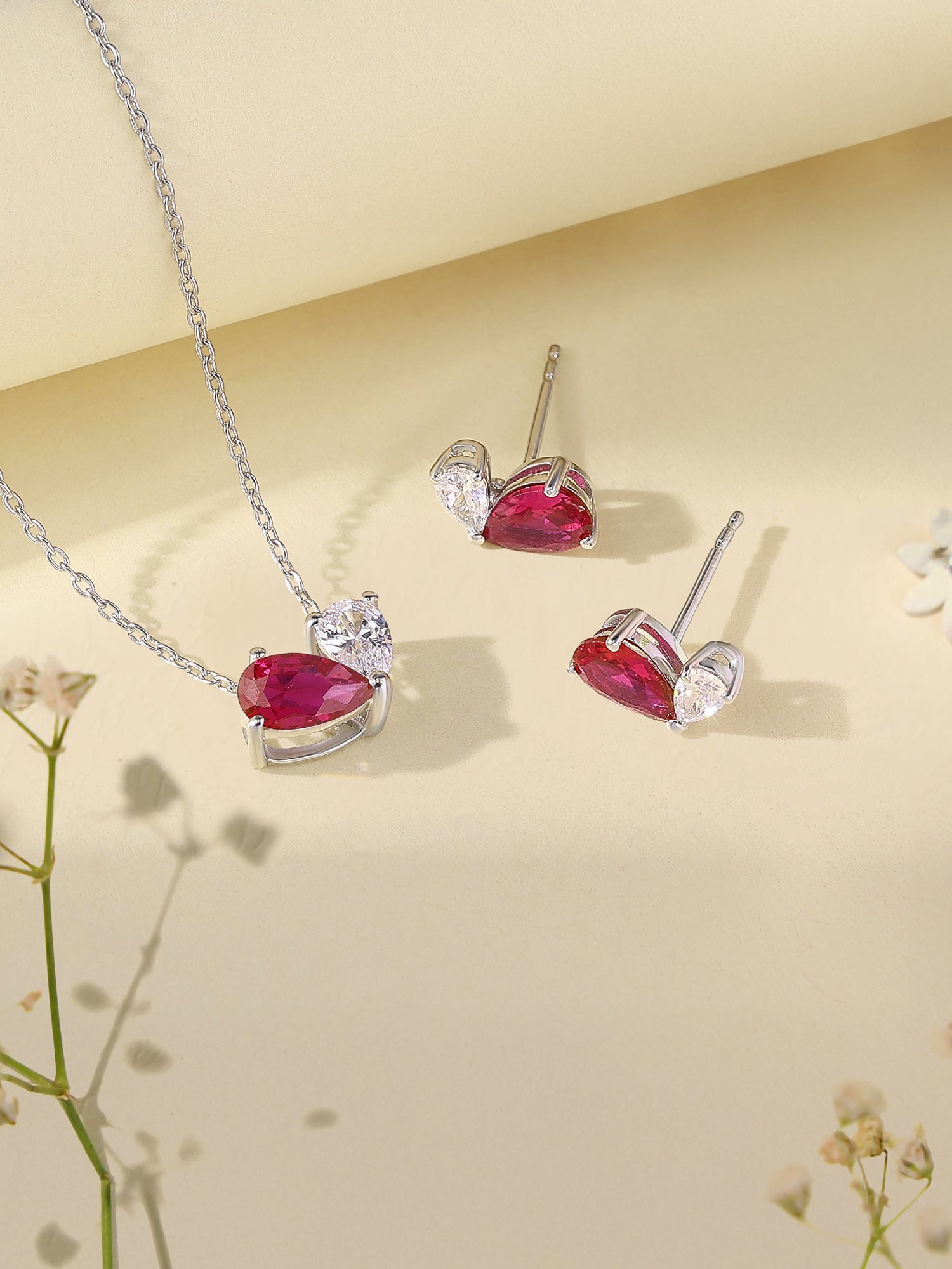 - Ruby Solitaire Necklace with Earrings: The Ruby Solitaire Necklace comes with matching earrings, perfect for adding grace to any outfit. Featuring a stunning ruby gemstone set in a delicate sterling silver chain, this set is a great addition to your ruby jewelry collection. It's sure to make you feel beautiful and confident wherever you go.