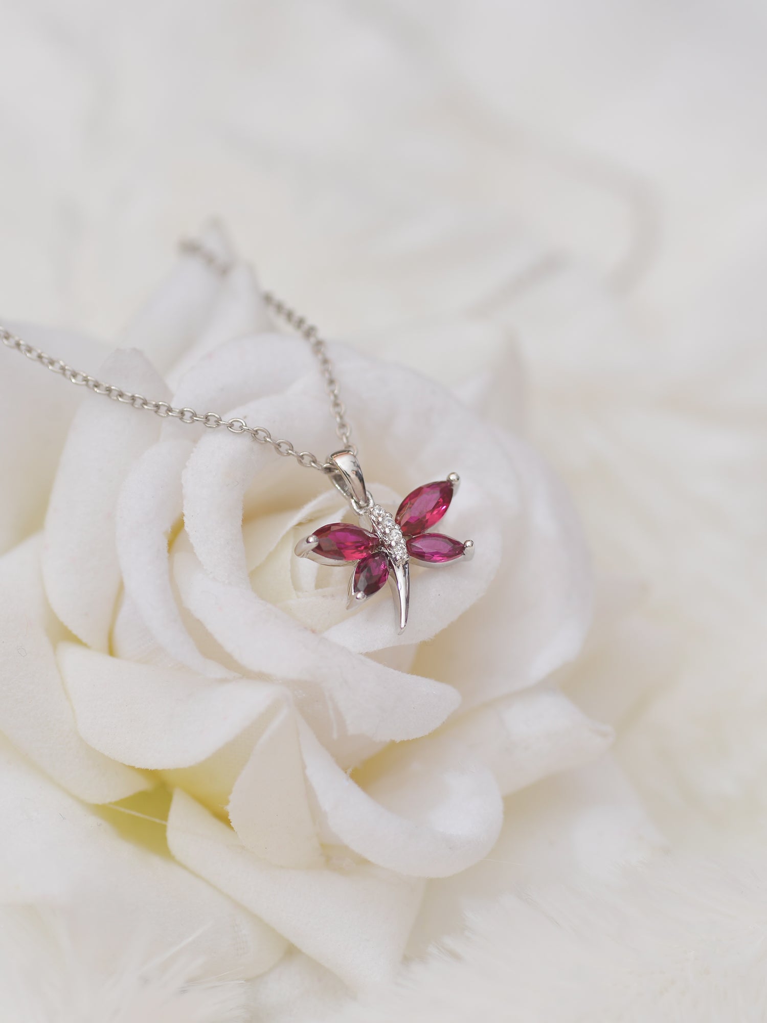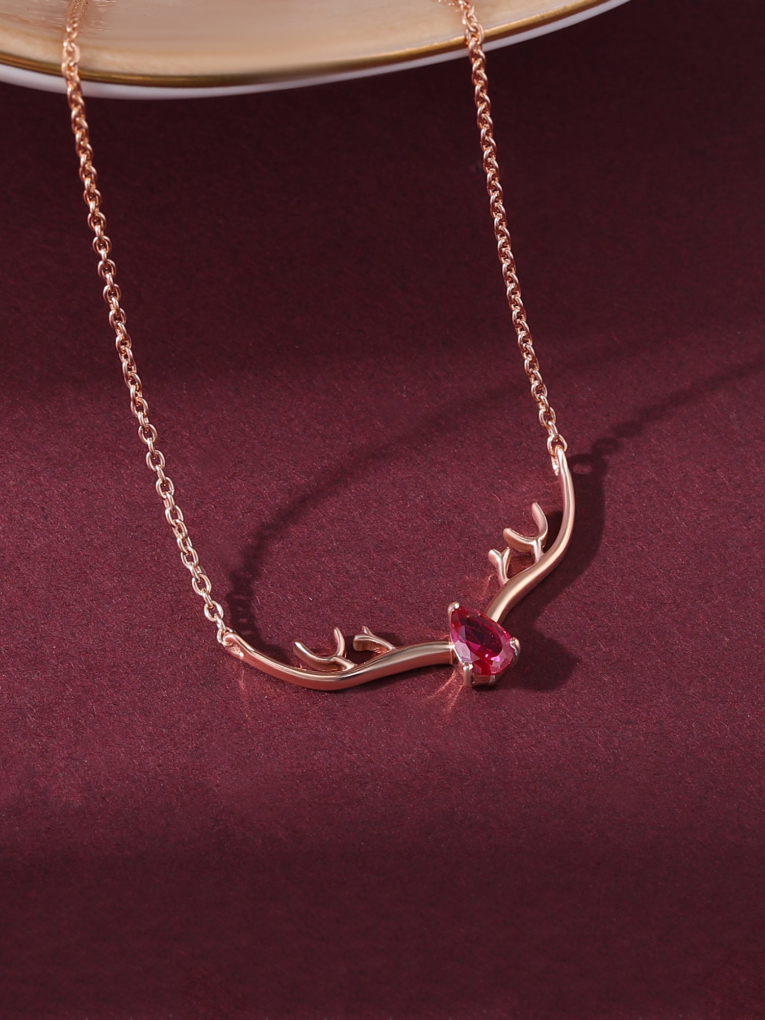 - Ruby Necklaces: Necklaces with ruby pendants come in gorgeous styles such as oval, solitaire, deer, or pearl shapes. Whether it's a classic ruby solitaire or a stylish deer pendant, each pendant lends a unique appeal to the sterling silver chain. These necklaces are ideal for giving your outfit an extra element of style and individuality.