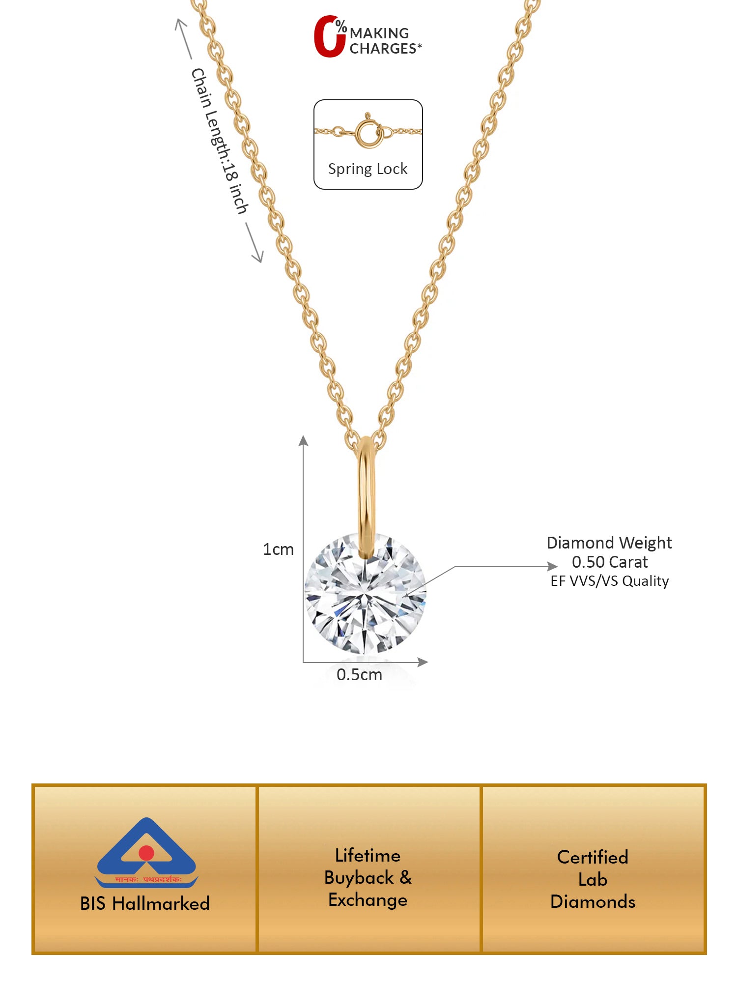 Simple and always in trend, this solitaire Lab diamond pendant with a chain is a must-have for every woman. High quality is a must-have for quality lovers.