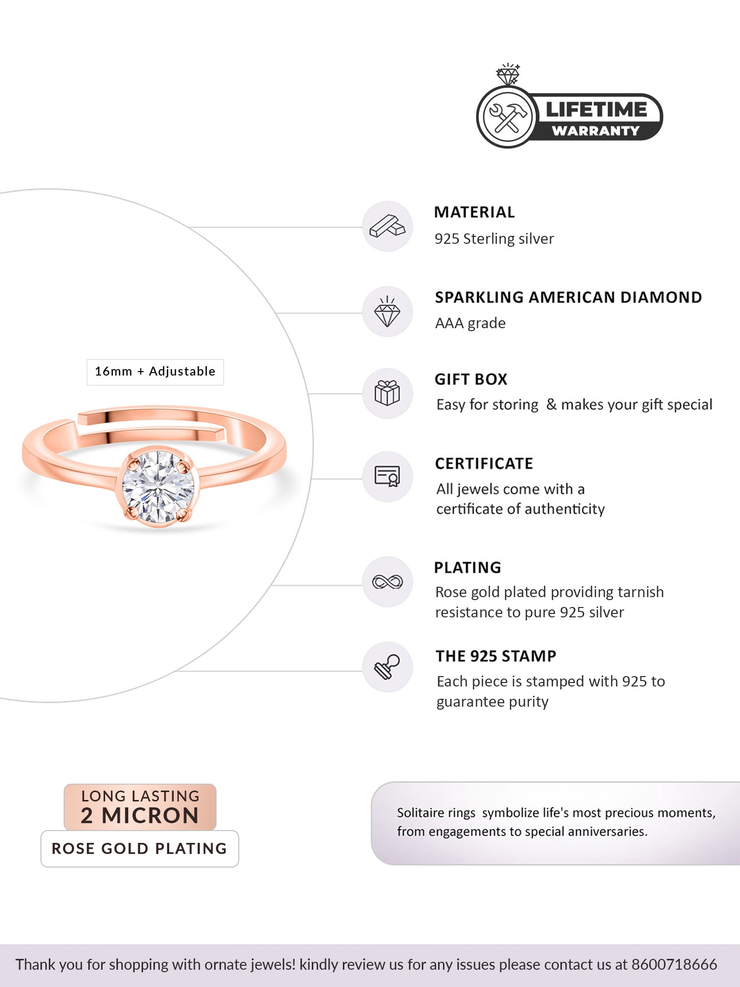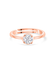 1 Carat Diamond Look Rose Gold Adjustable Solitaire Ring in Silver