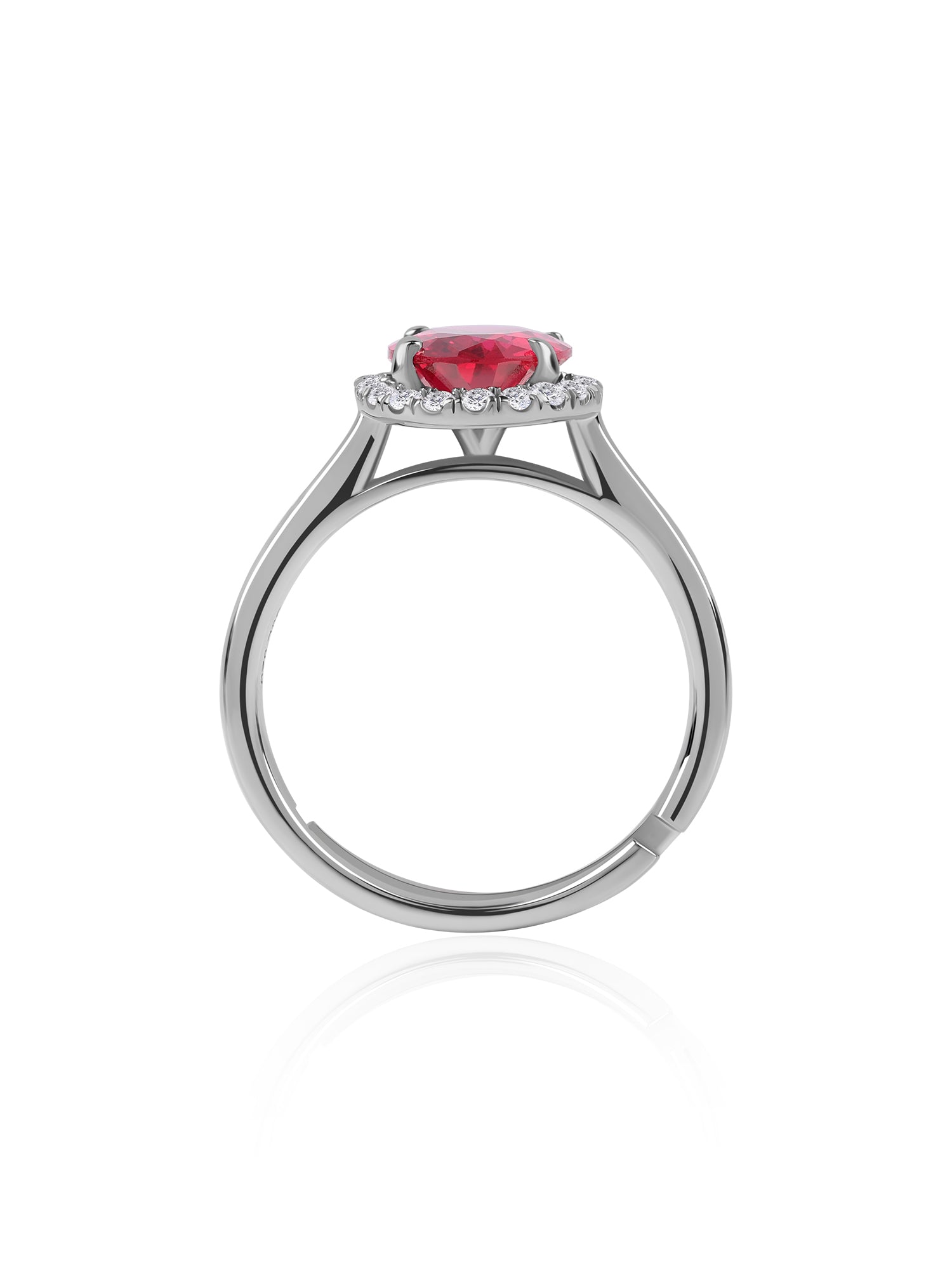 Ruby CZ Oval Halo Adjustable Silver Ring