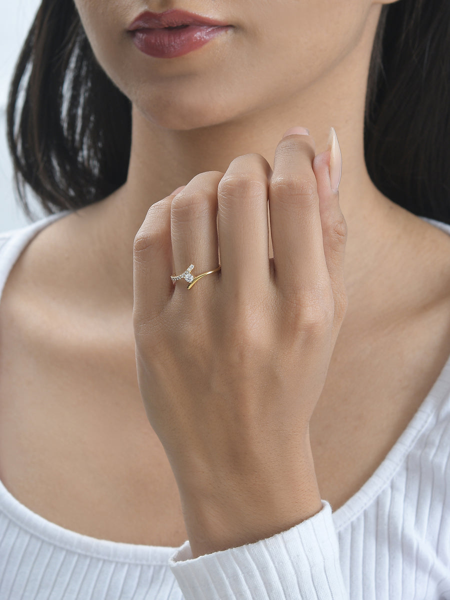 Perfect for an engagement or a special anniversary, the Solitaire Crossover Diamond Ring in gold for women is an expression of your journey of love and life together. Its elegant design makes it a versatile piece that can be worn daily or on special occasions.