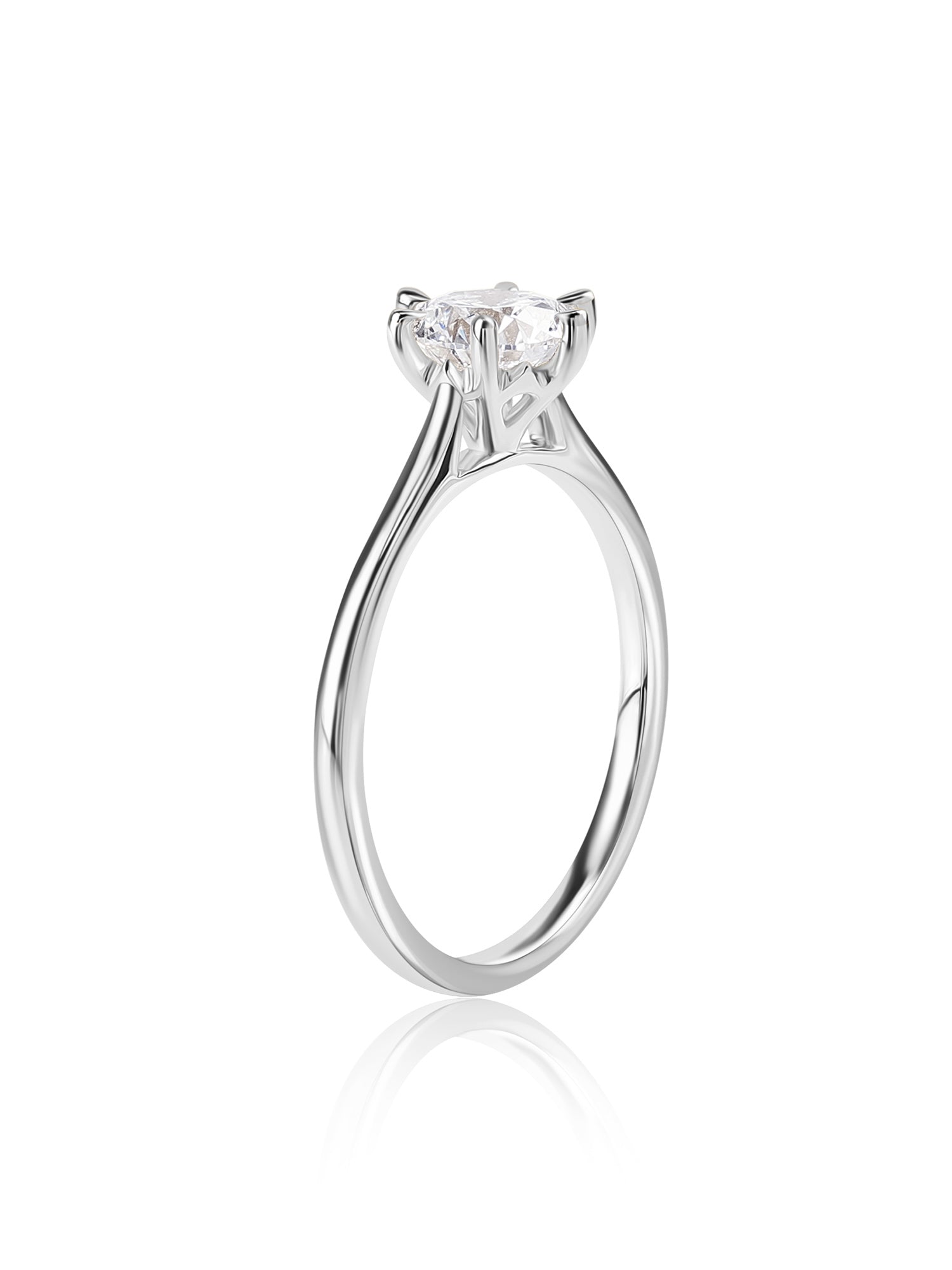 Always in demand, this classic round solitaire engagement ring is studded in gold with 6 six-prong designs and is a choice for most women. It makes an excellent engagement ring for women.