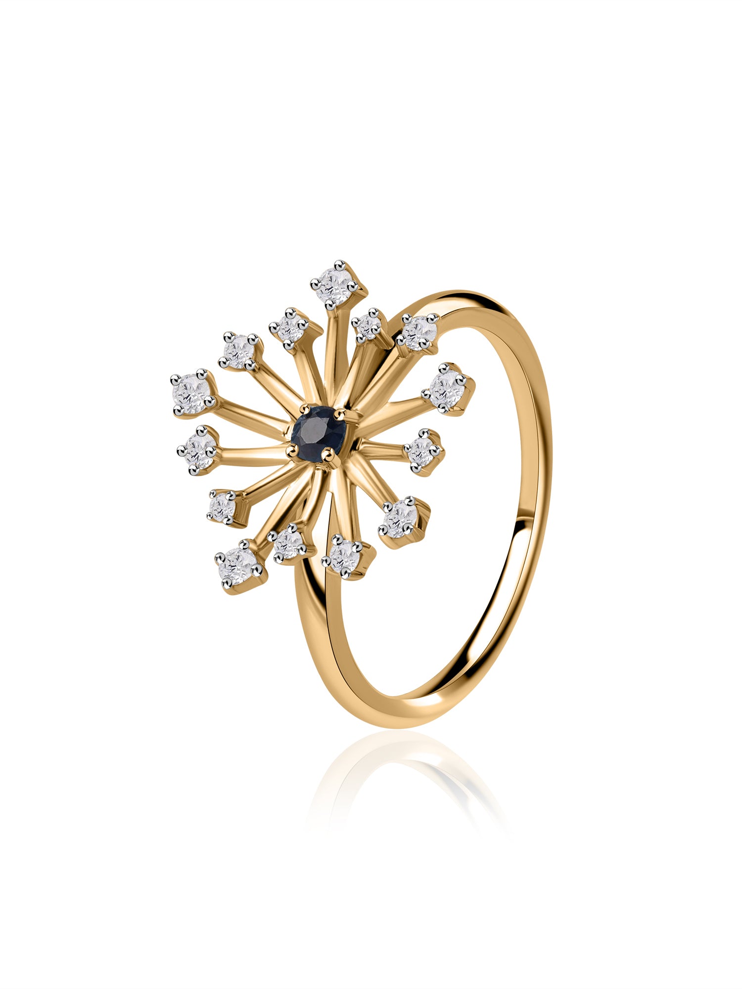 This ring has a center of natural blue sapphire and is inspired by the cosmos, adding sparkle to your life.