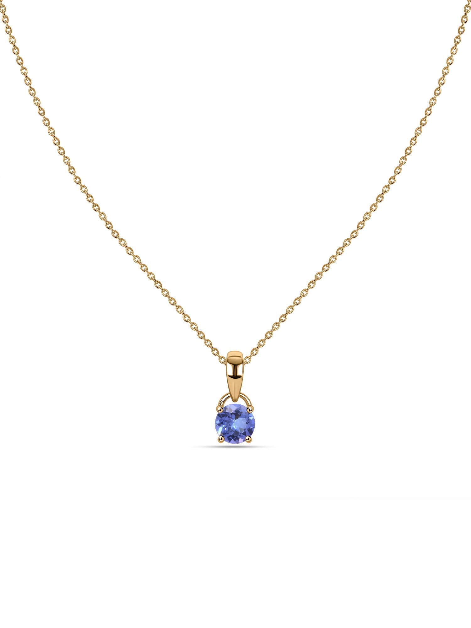 Simple yet stunning, this natural tanzanite pendant showcases a brilliant round gemstone that sparkles with every movement. Set in a sleek gold design, it’s a timeless piece that adds effortless elegance to any outfit or occasion.