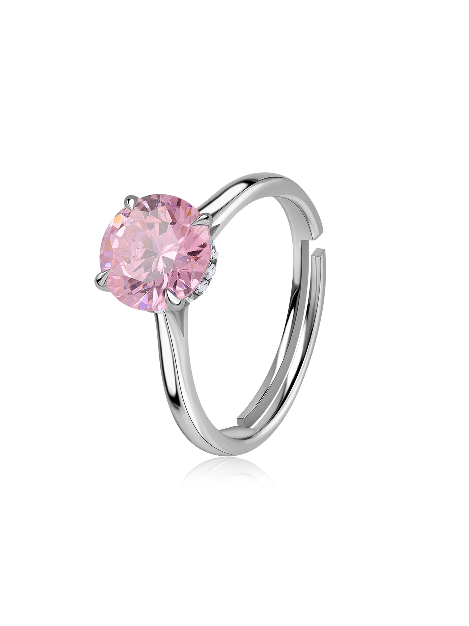 Blush Pink CZ Round Solitaire Adjustable Silver Ring