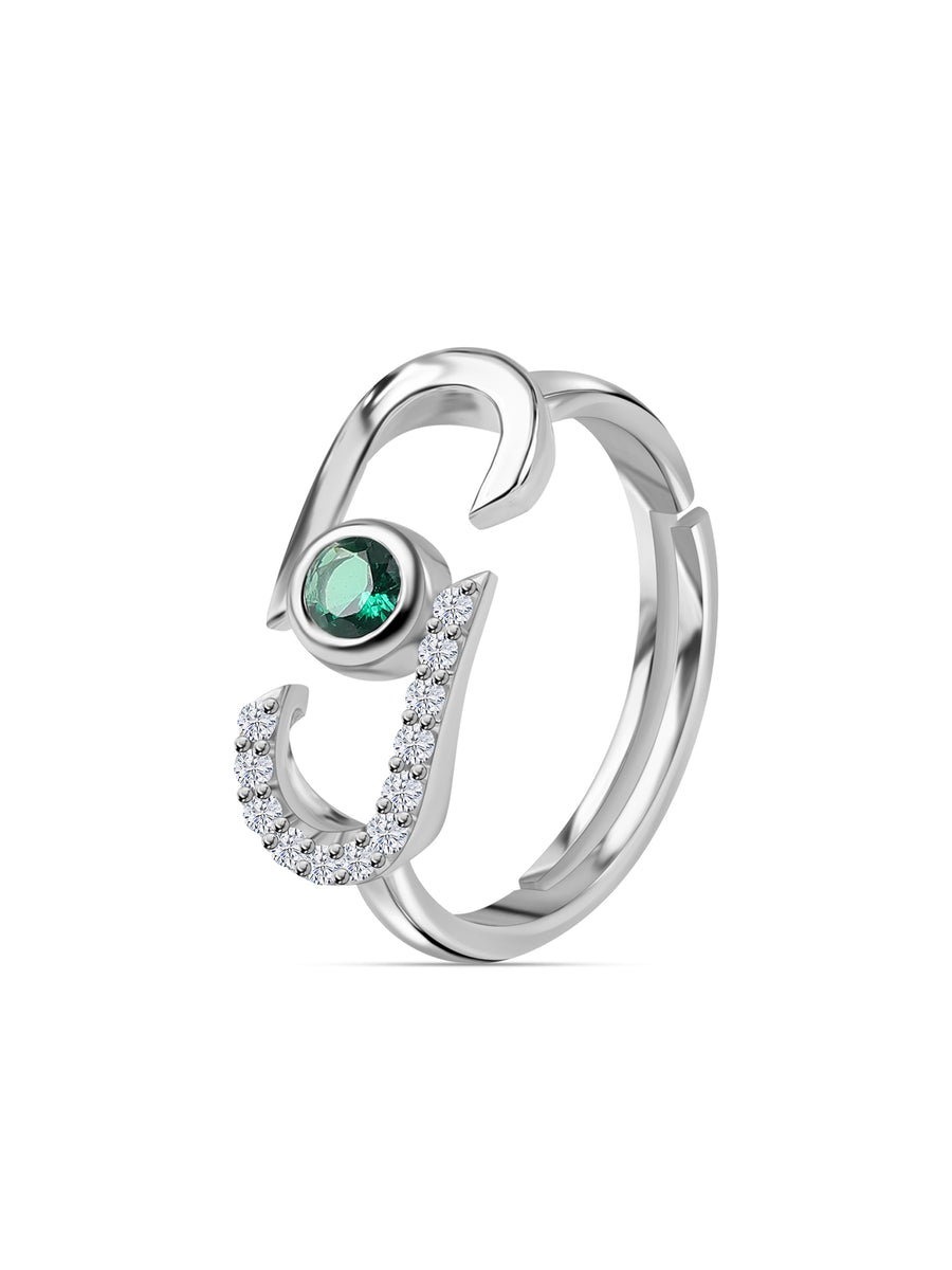 A uniquely designed ring for women studded with lab emerald and diamond look cz. The adjustable fit makes it even more versatile for wearing