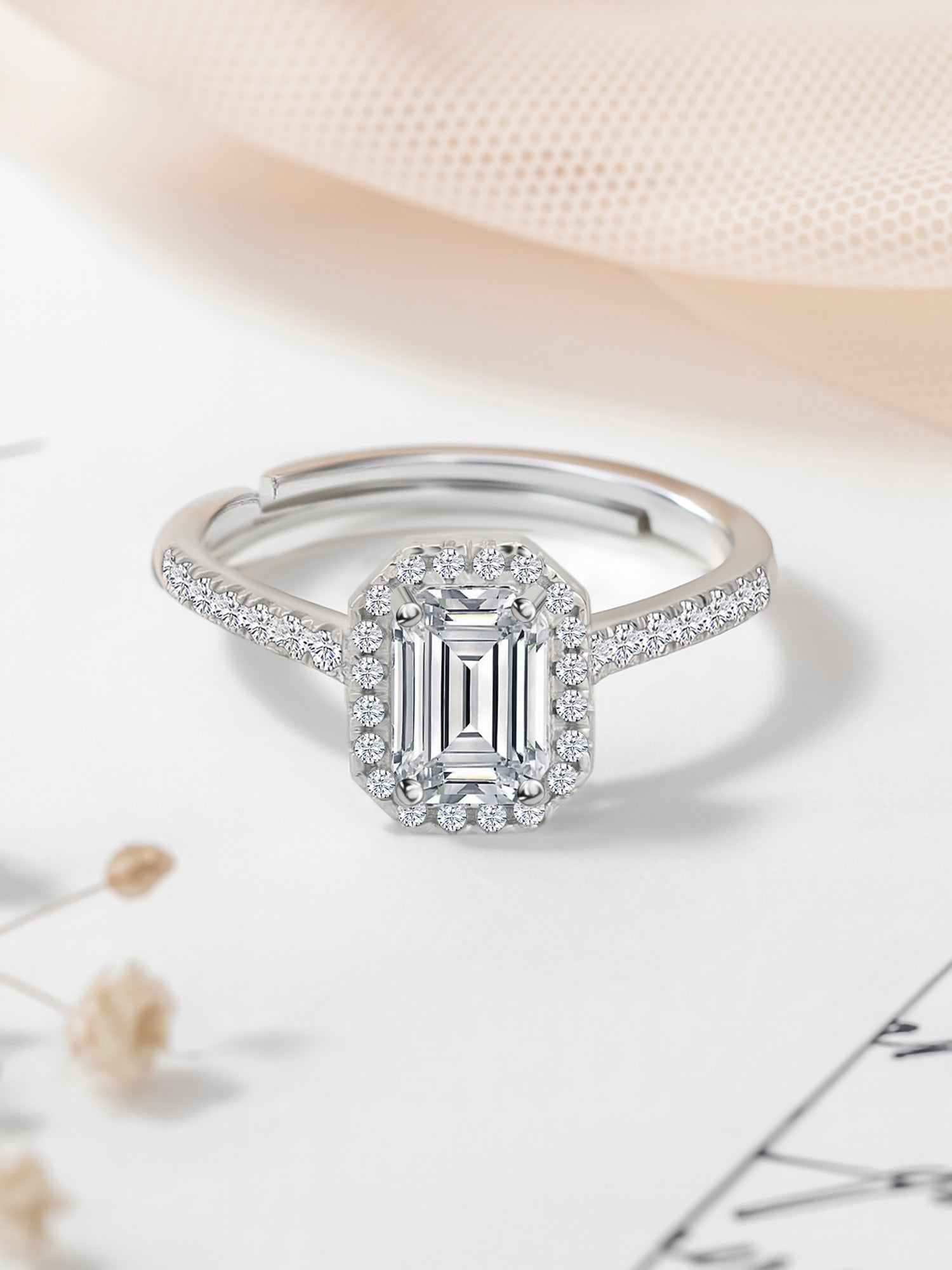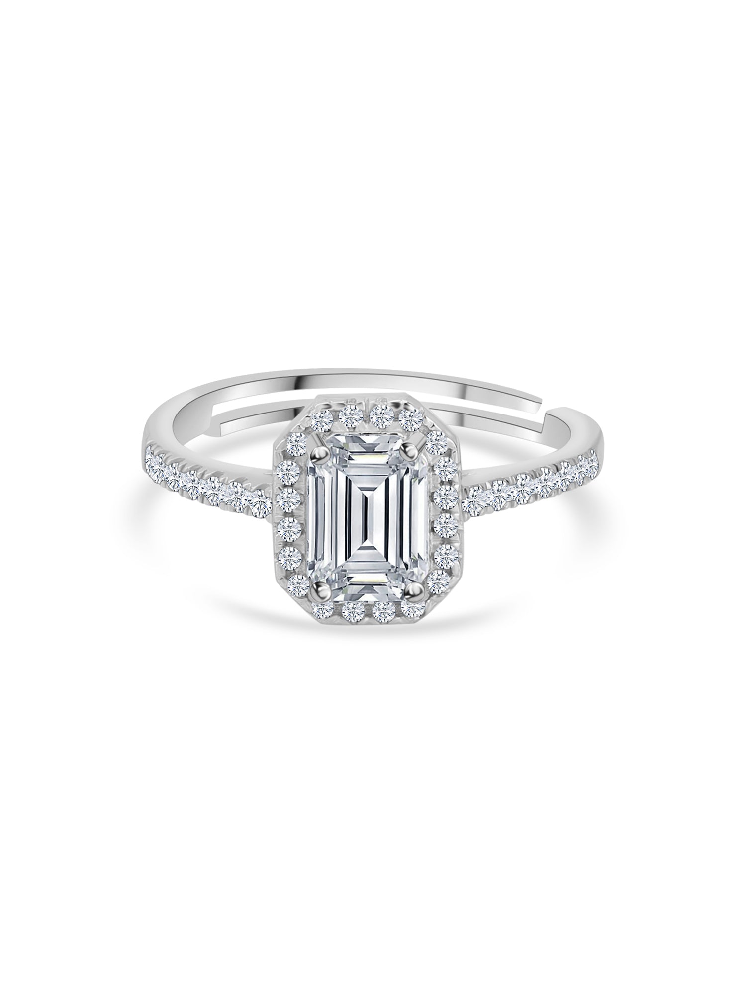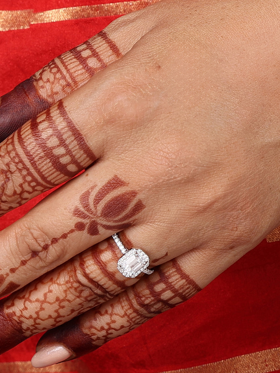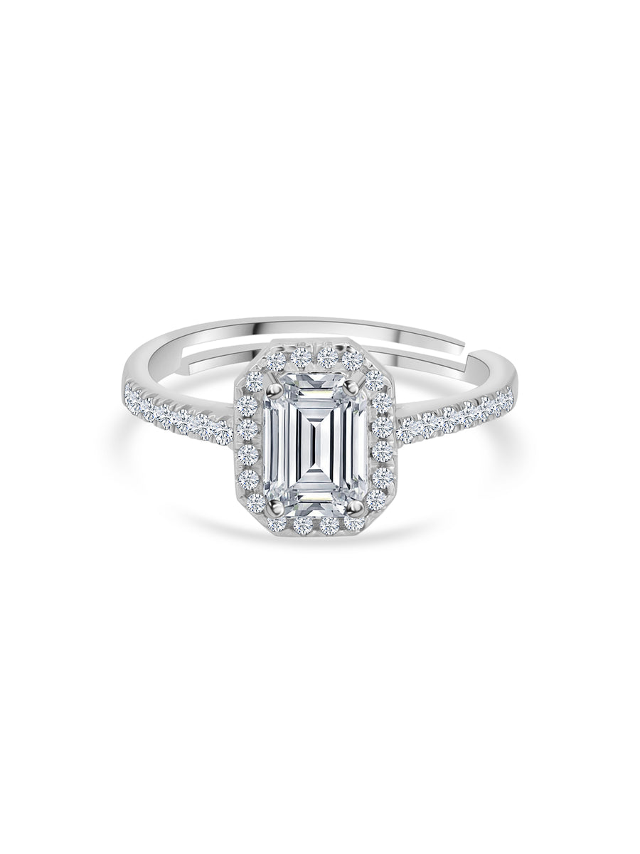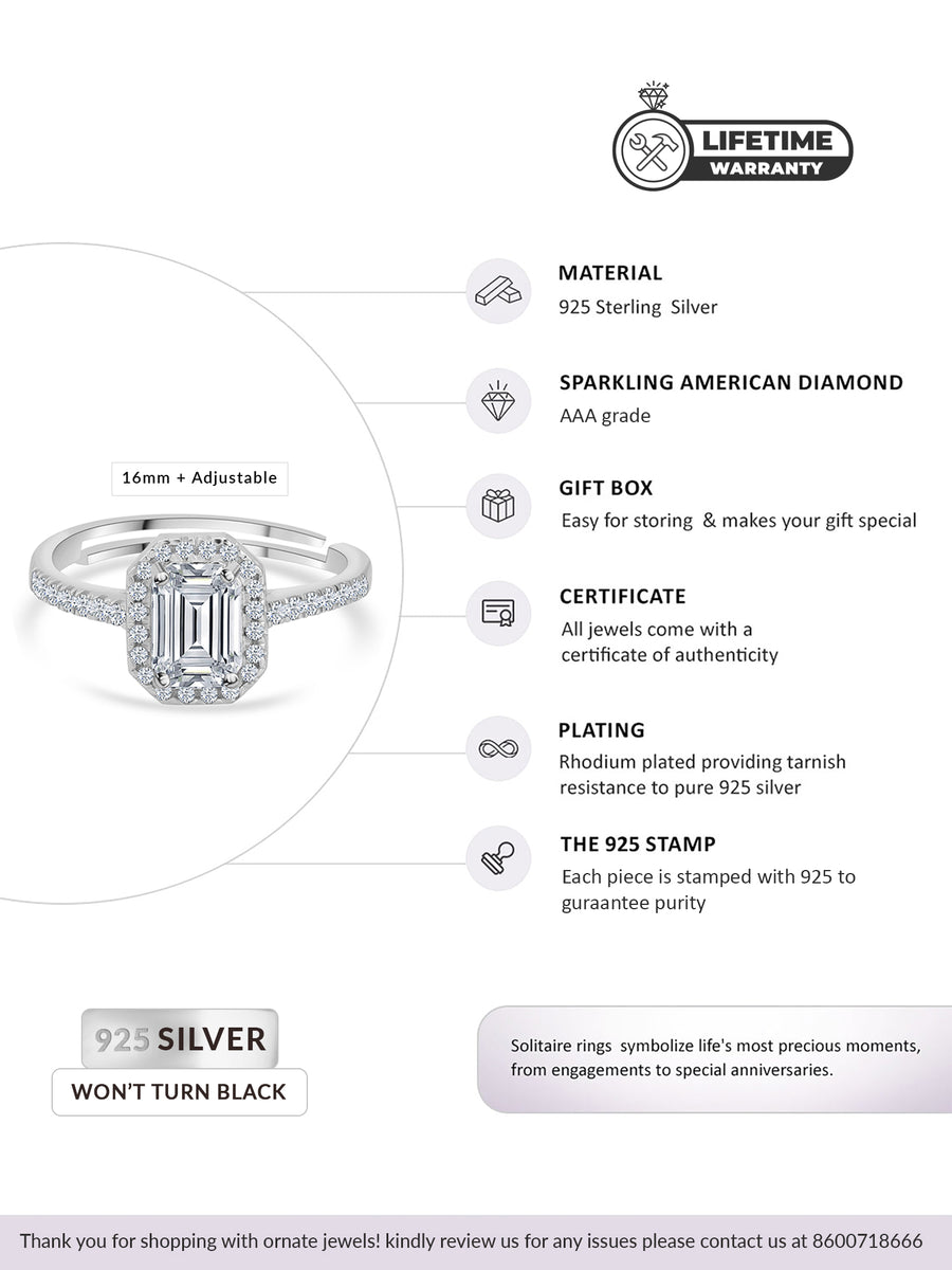 Presenting you yet another beauty in Royal AAA grade American diamonds. Enjoy wearing this 925 anti-tarnish sterling silver adjustable ring