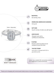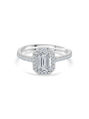 1.5 Carat American Diamond Adjustable Halo Ring in 925 Silver