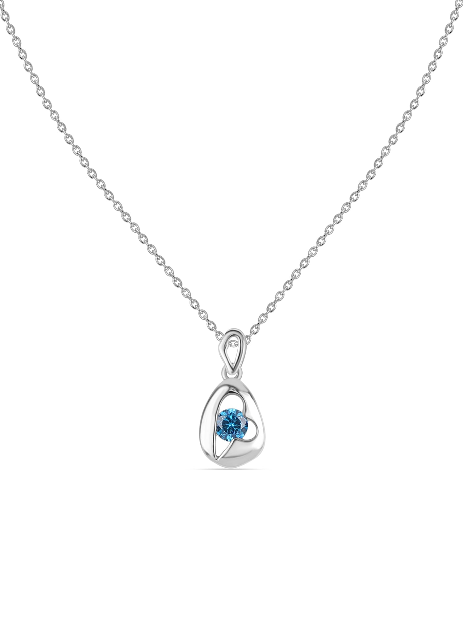 Celebrate love and elegance with this Blue Topaz studded silver heart pendant with a Chain. Crafted with premium silver, this pendant features a beautifully cut heart-shaped inside pear pendant and has a tiny blue topaz that sparkles with every movement. Whether as a meaningful gift or a personal treasure, this pendant is a timeless symbol of love