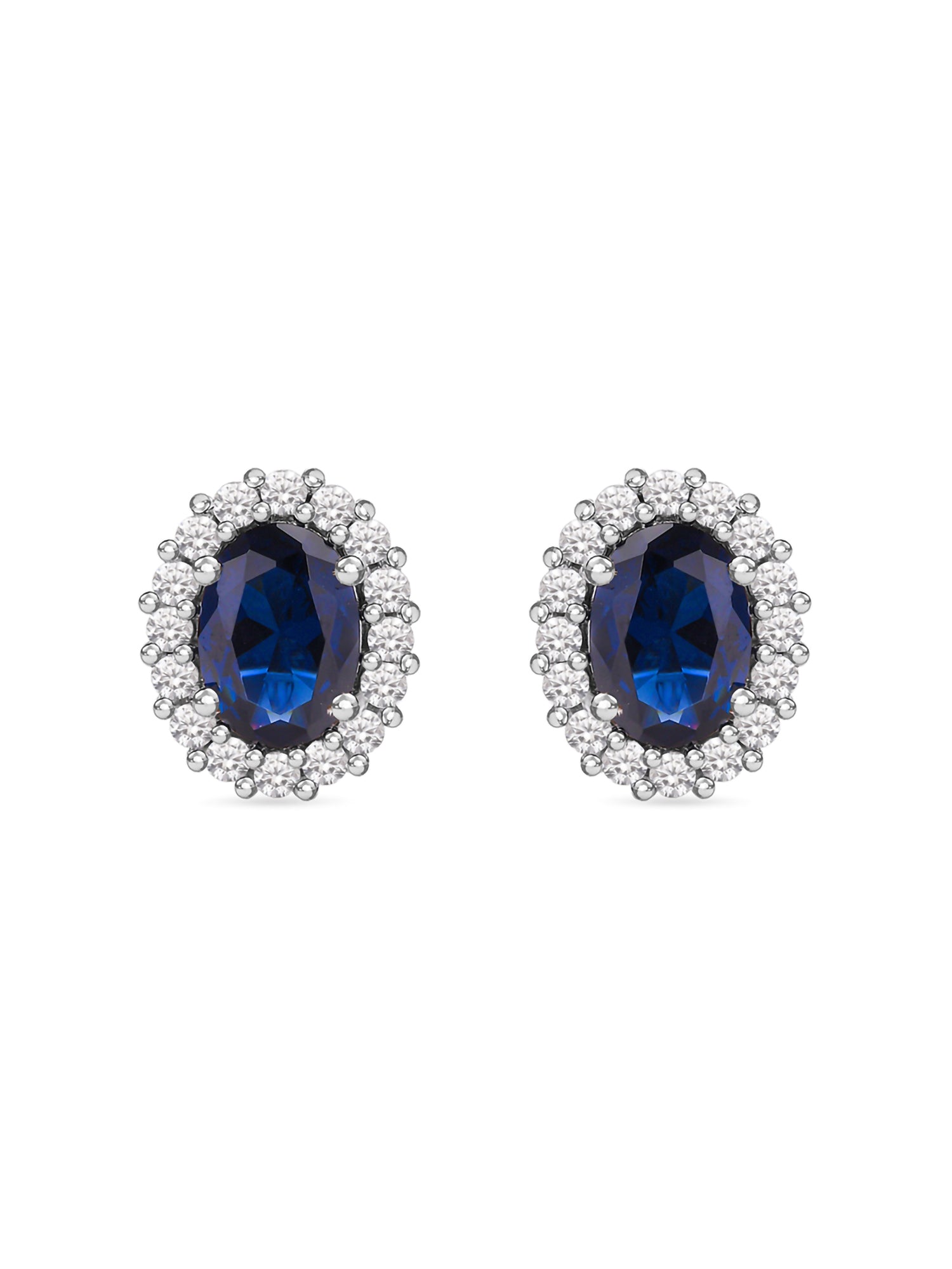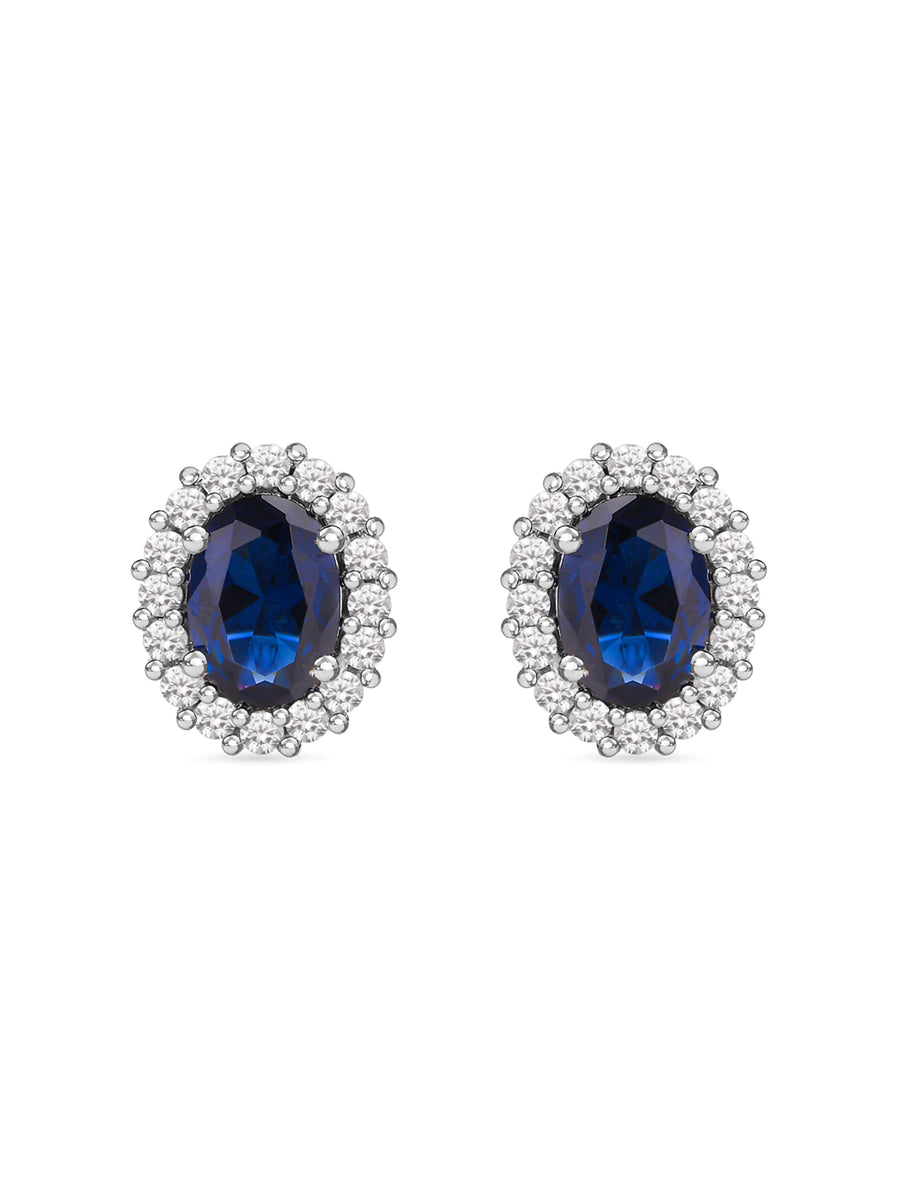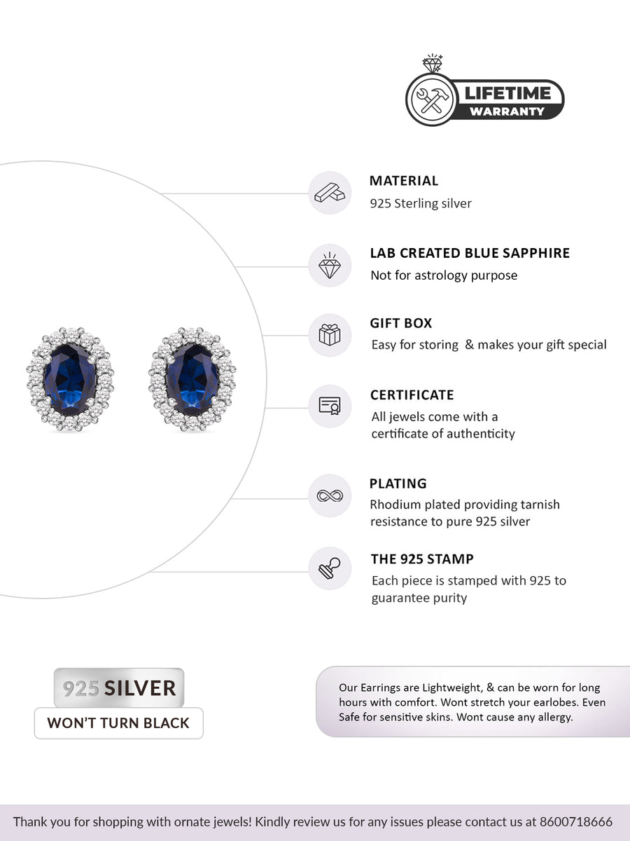 Classic Royal Blue Sapphire Stud Earring In 925 Silver